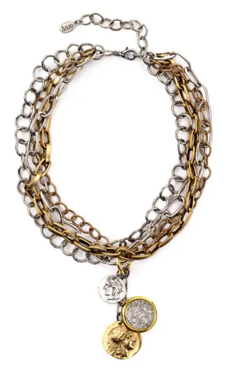 LIZA RUSTICIA COIN NECKLACE IN TWO-TONE
