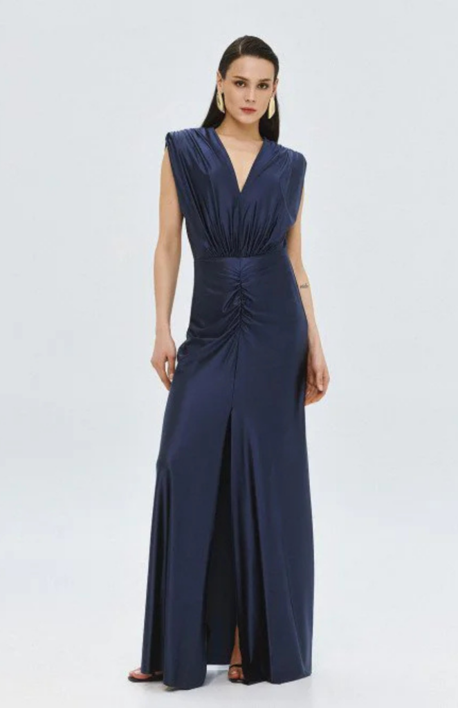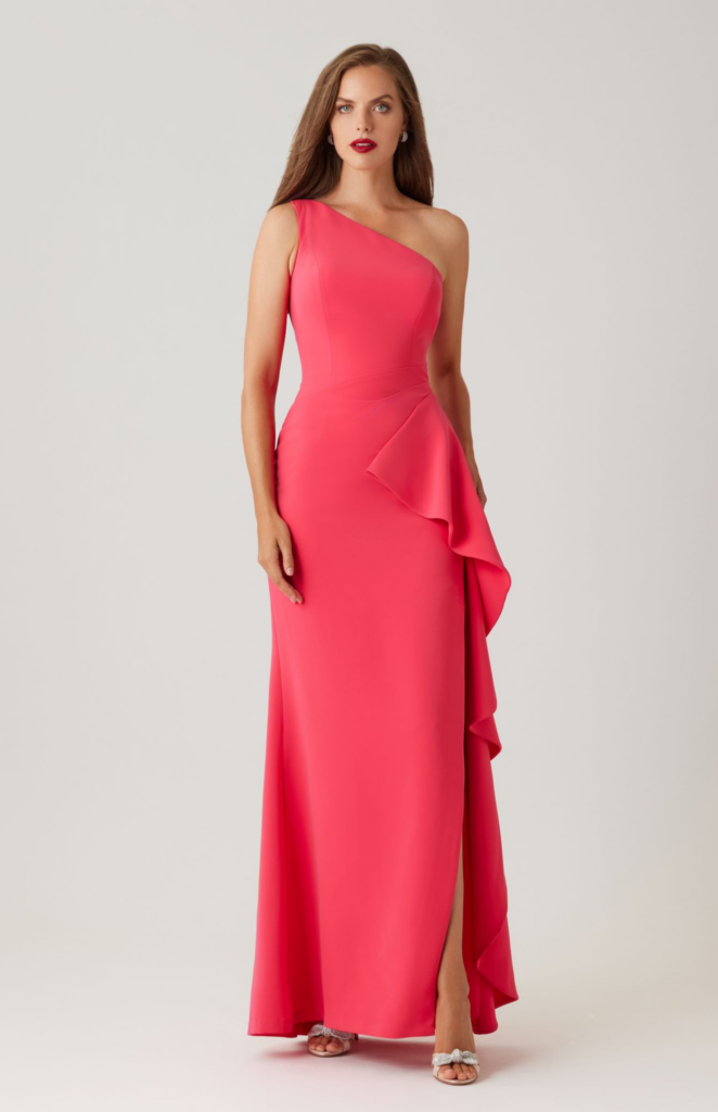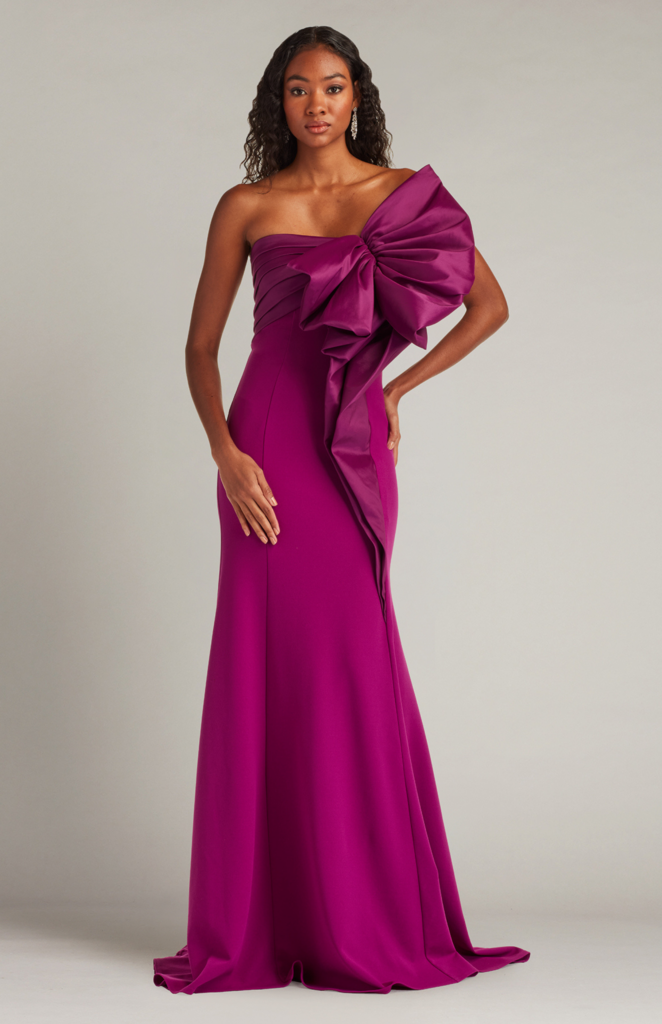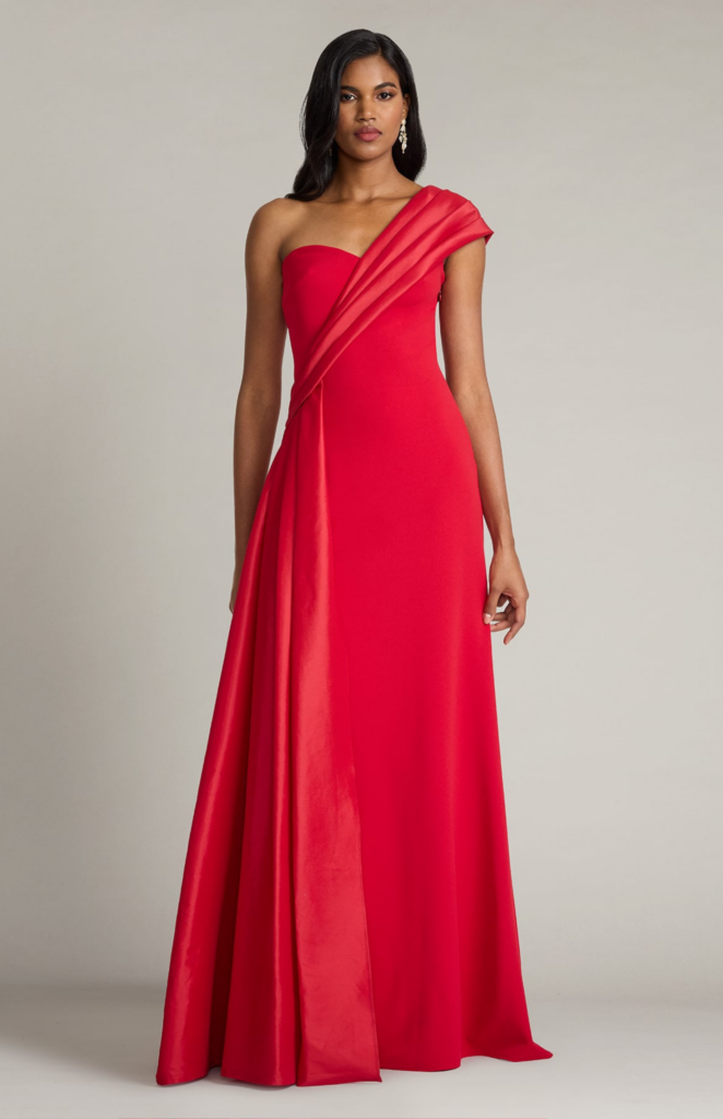 Barlowe Ruffled Shoulder Draped Crepe Gown