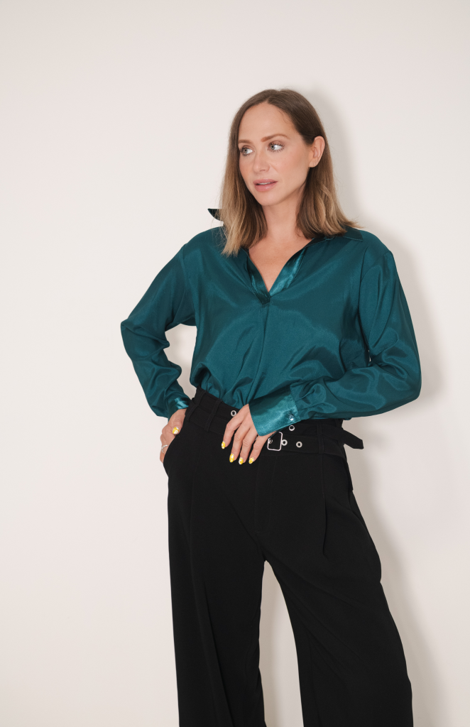 Bonnie Long Sleeve Blouse in Forest green – sz xl