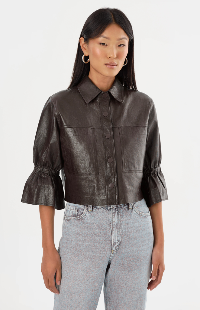 CAROLINA | Leather Ruffle Sleeve Jacket