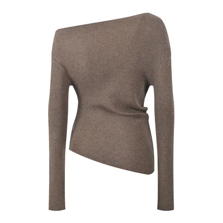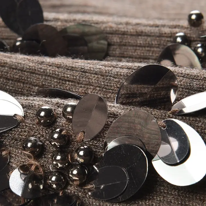 This elegant grey knit top features a chic off-shoulder neckline and a figure-hugging silhouette that enhances your feminine charm. The front is delicately embellished with handmade floral appliqués and shimmering sequins, adding a touch of refined glamour. Crafted from soft, stretchy knit fabric, it offers both comfort and style, making it perfect for pairing with skirts or jeans for casual outings or evening gatherings. The subtle sheen and intricate detailing make this piece a standout addition to your fall and winter wardrobe.
