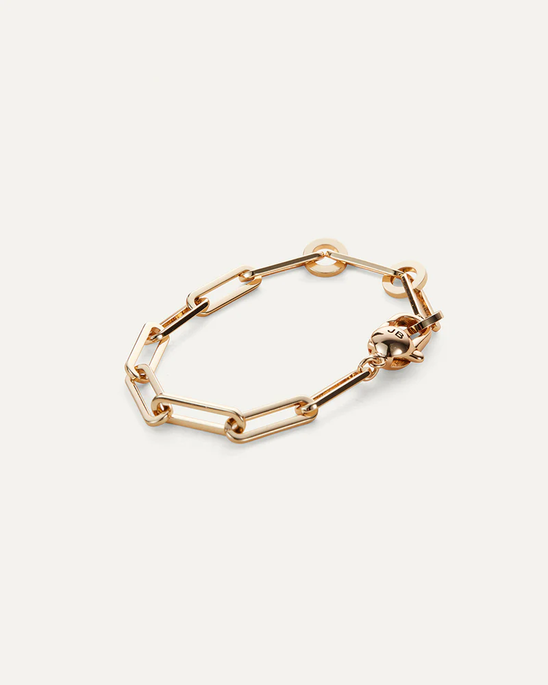 A modern paperclip chain bracelet with a crisp silhouette and lean links. This design includes non-removable extender rings and a custom ball closure, making it easy to adjust to your ideal length. Finished in high-polish gold.