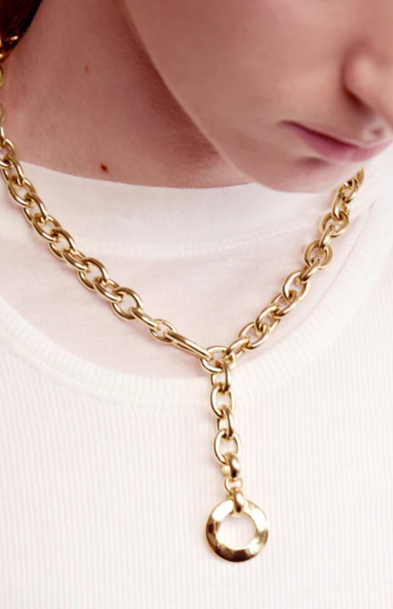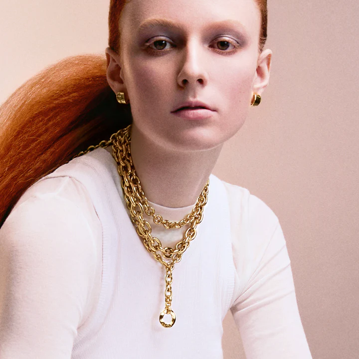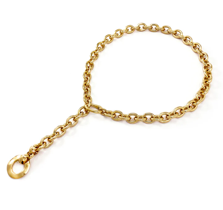 Enter the ultimate multitasker, effortlessly transitioning from style statement to practical companion. A chic oval chainlink is topped off with an “invisible” oval clasp that will clip in anywhere along the chain, bringing you endless style options. Into a choker? Yes, this is it. Love a long V? Yes, right here! Rather just showcase a sleek easy-going chain, with clasp detail to the back? YES, we’ve got you covered. Featuring our custom wavy circle pendant we know you’ll love.