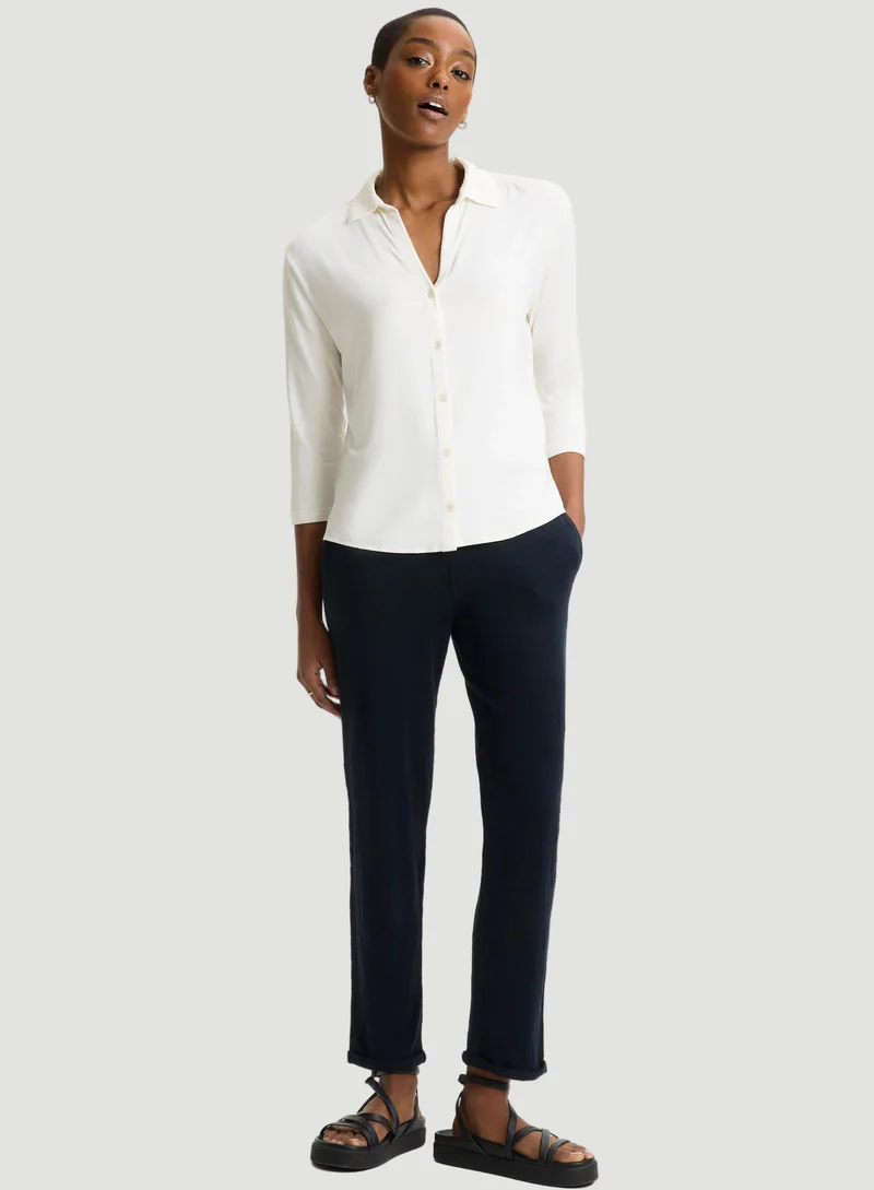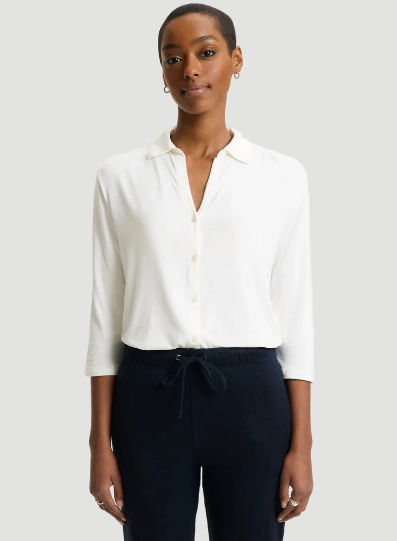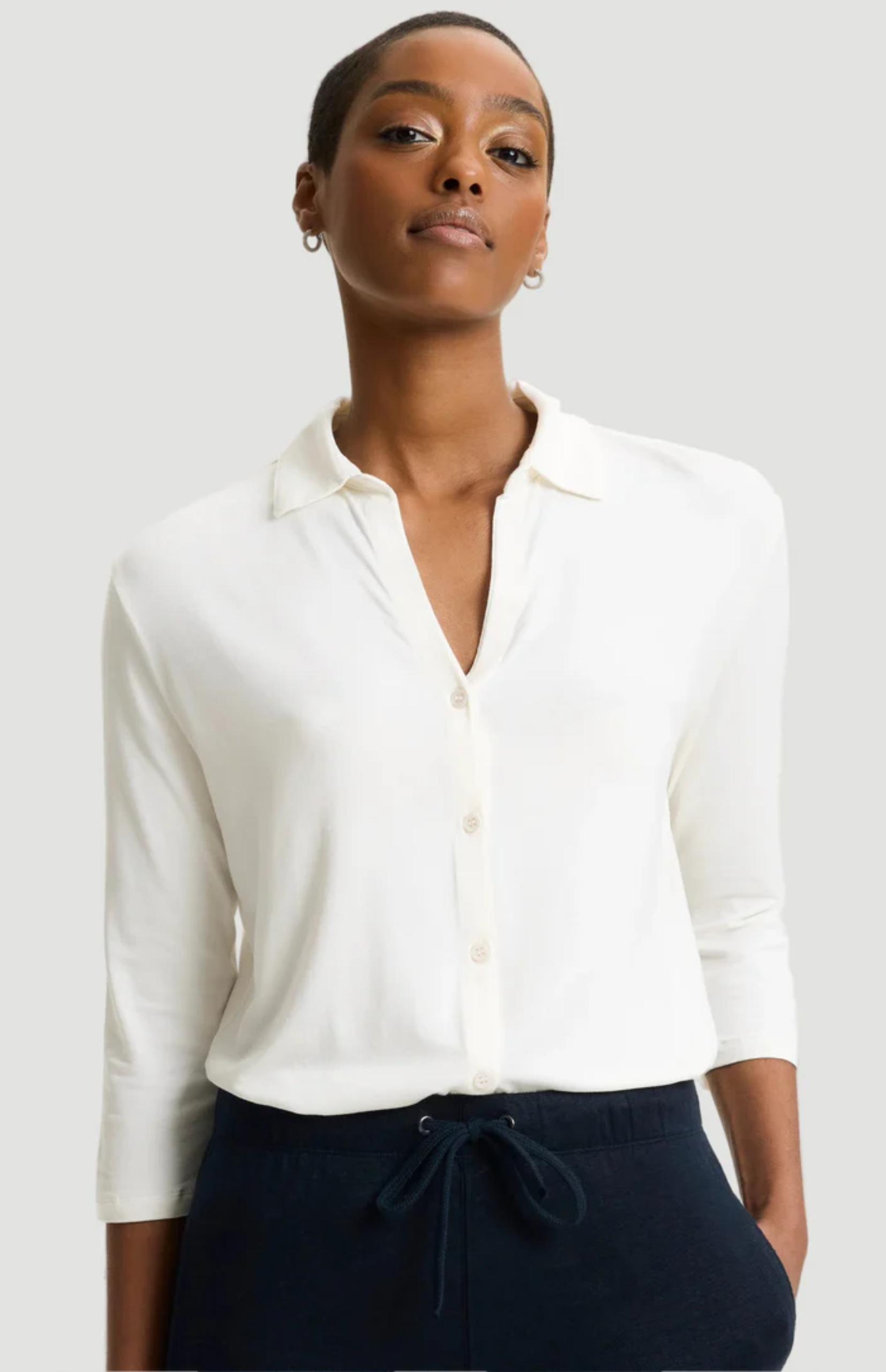 This soft touch three-quarter sleeve shirt features a luxurious semi relaxed fit with a side slit finish. A unique and sumptuous blend of the highest quality fibers, this tee is ultra-soft, color fast, and lightweight. Your second skin and perfect layer. The fabric will never pill, stretch, fade, or wrinkle.