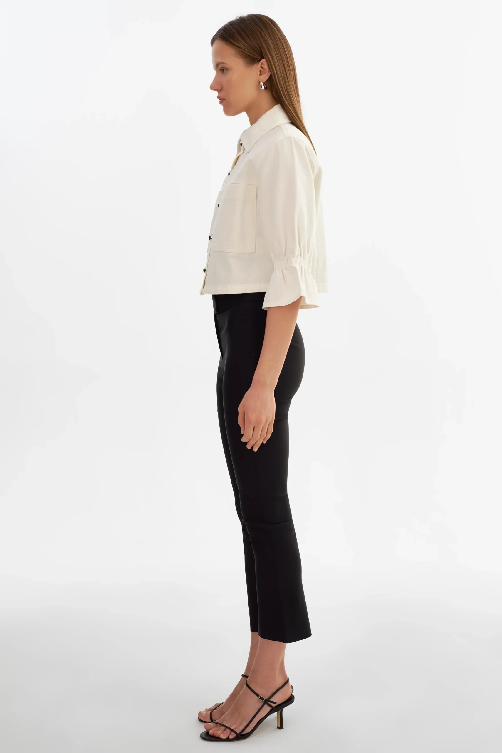 - Ruffled cropped sleeves