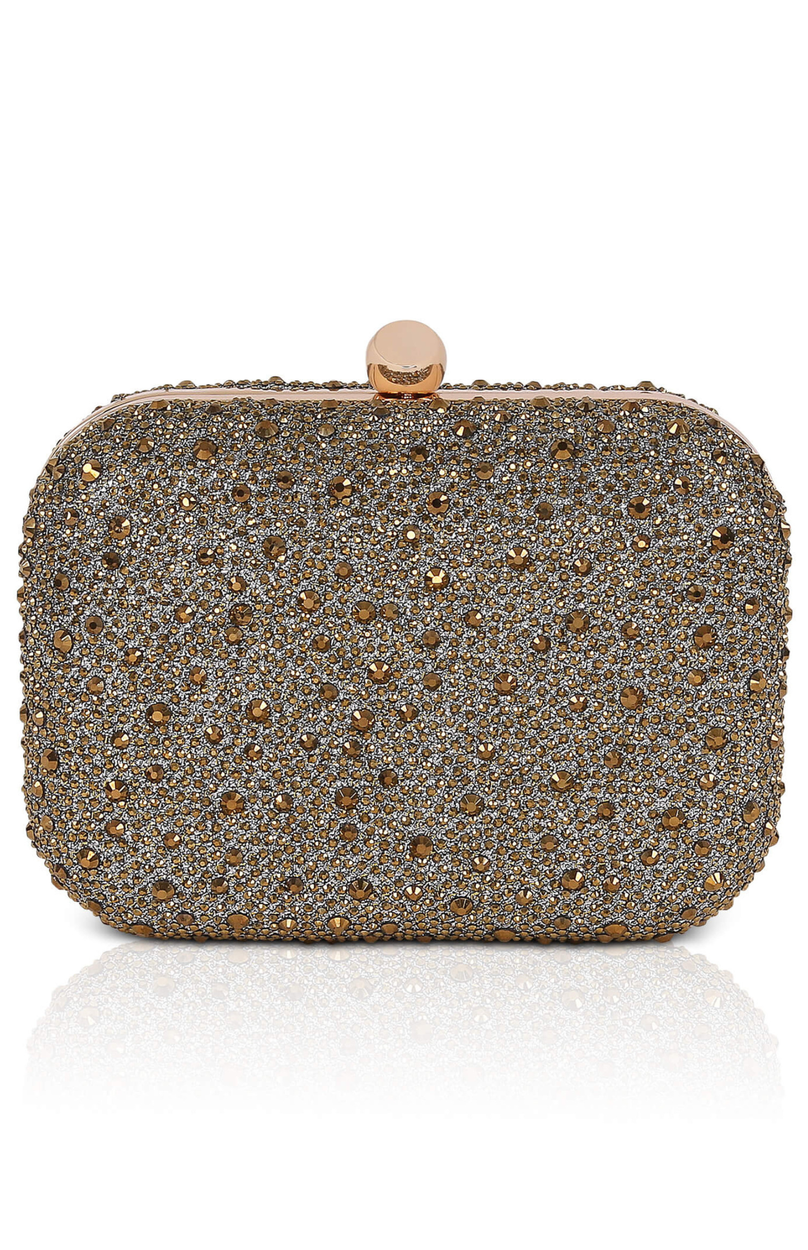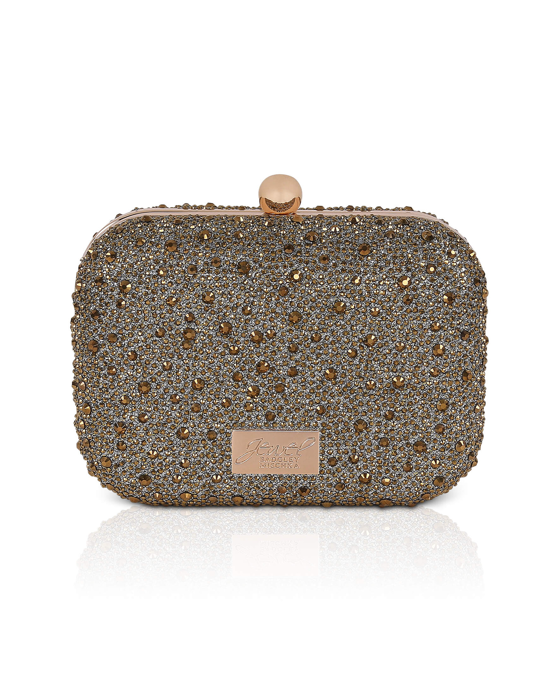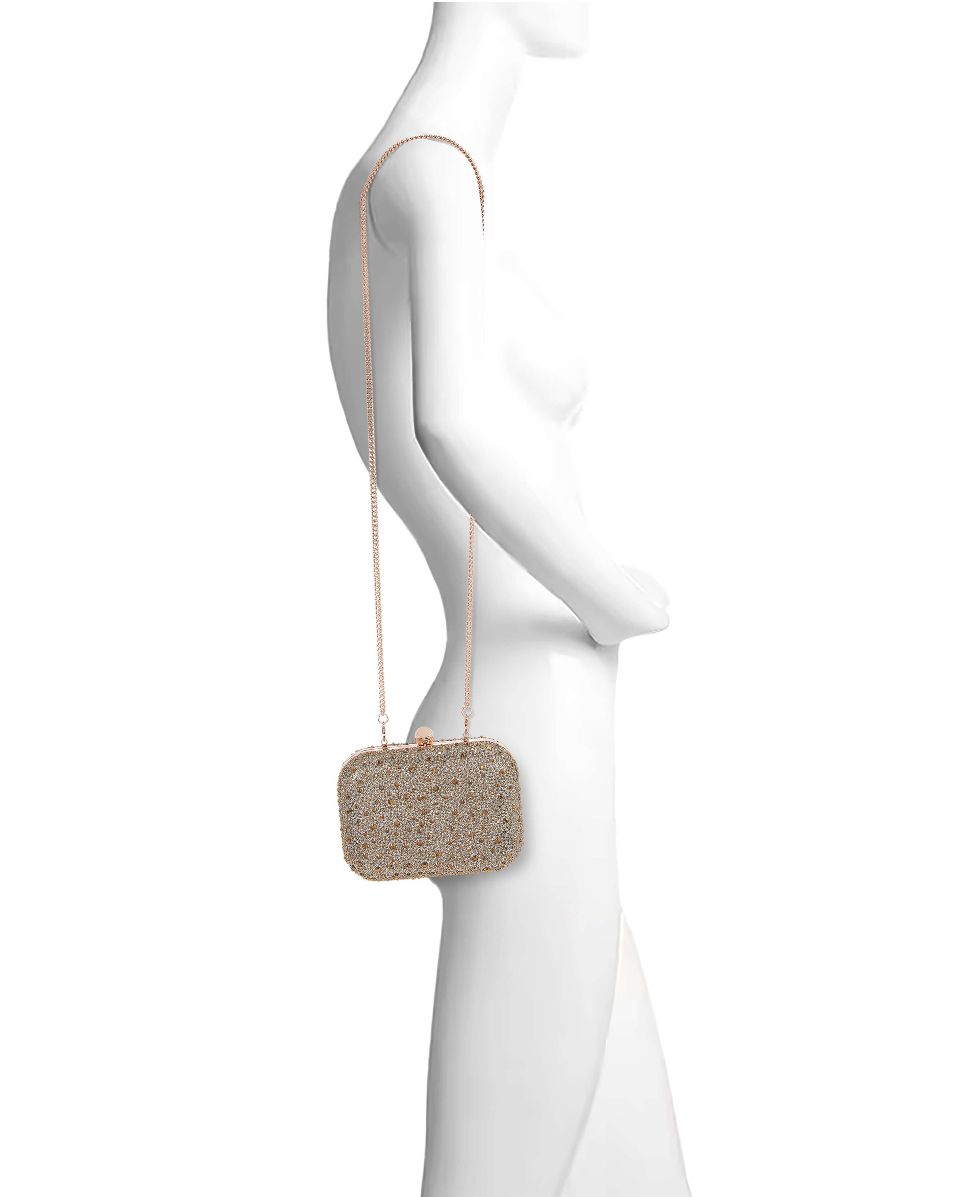 Shine bright with the Celest Crystal Mini Minaudiere Clutch. This stunning evening bag is the perfect accessory for any special occasion. Its textural allover crystals catch the light beautifully, adding a touch of glamour to your look. Carry it as a hand-held box clutch or use the detachable 22″ drop chain for an over-the-shoulder option. With one inner card pocket for essentials, this mini minaudiere clutch is both stylish and practical. This Jewel Badgley Mischka bag offers versatile carrying options making it the perfect complement to your special occasion outfit.
