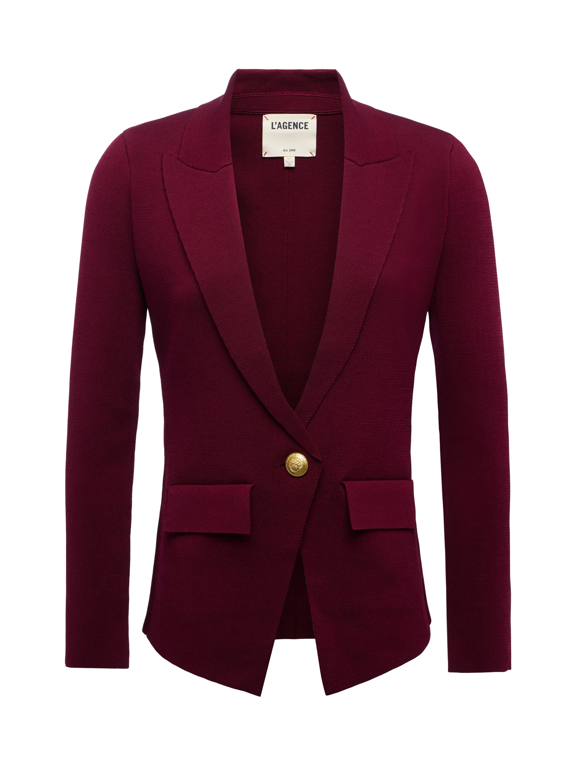 The ultimate single-breasted blazer, now in a rich dark port knit.