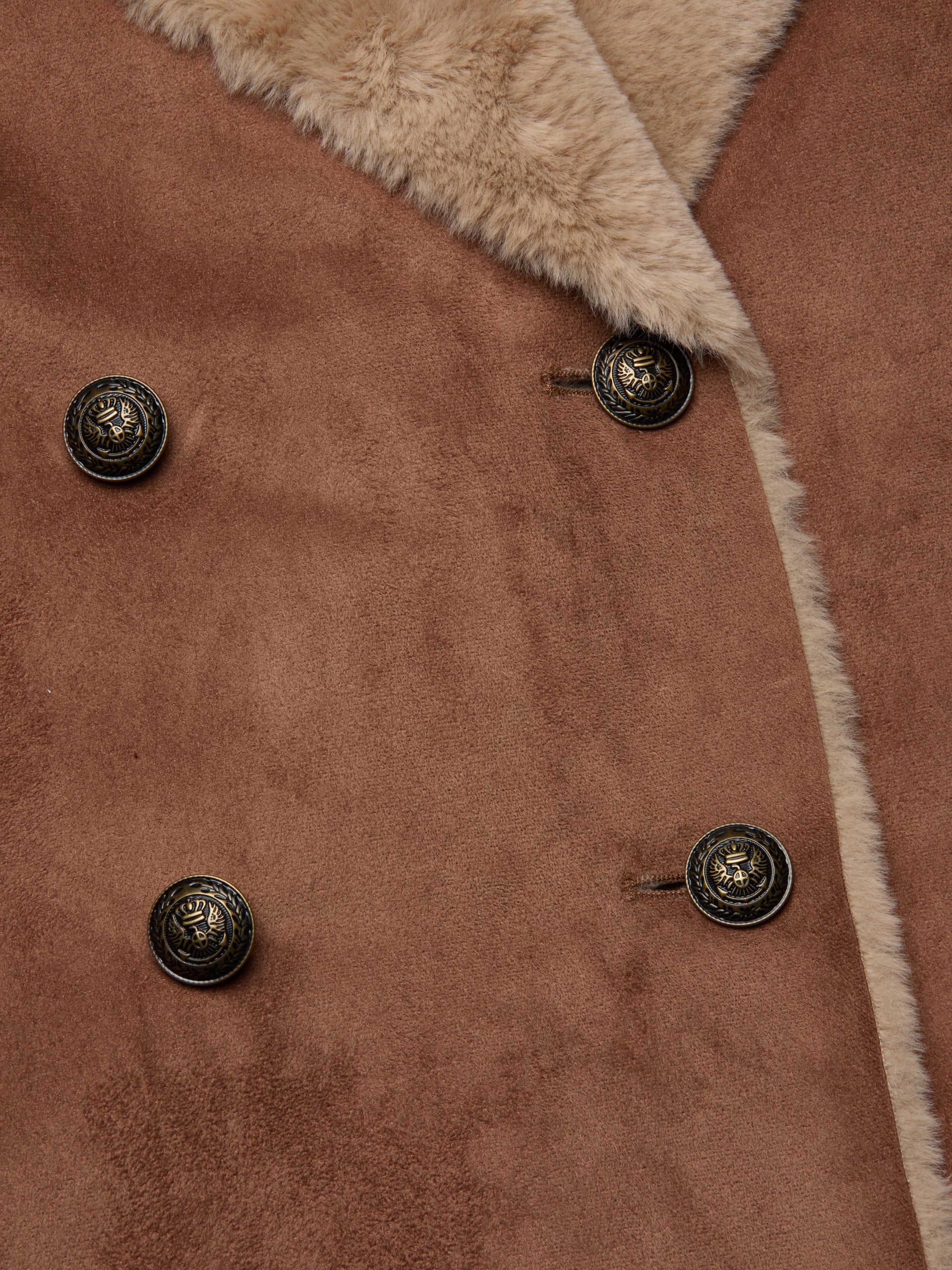 Channeling a retro spirit with modern ease, the Citron features vegan suede and faux shearling in rich camel tones for distinctive glamour, while the relaxed, oversized silhouette keeps it feeling laid-back. Throw it over everything and anything for a luxe yet nonchalant finish.