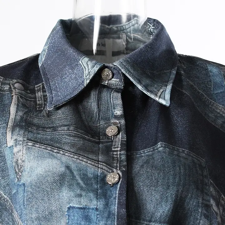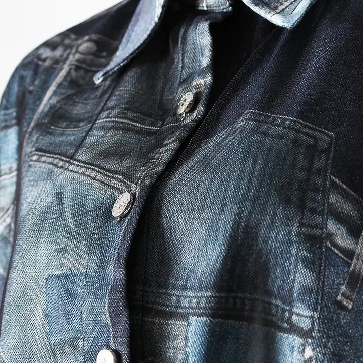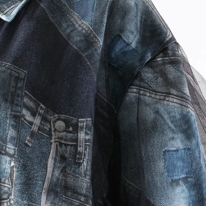 This 2026 early spring cropped jacket blends classic denim with delicate organza for a fresh and fashion-forward look. The printed denim body adds casual character, while the organza patchwork details introduce lightness and modern contrast. Designed with long sleeves and a short length, it creates a balanced silhouette that highlights the waist and adds structure to any outfit. The unique mix of textures brings strong design appeal, making it a standout layering piece for seasonal styling. Easy to pair with skirts, trousers, or dresses, this jacket works well for daily wear, street style, or creative casual looks. A versatile outerwear option that combines individuality, comfort, and contemporary elegance.