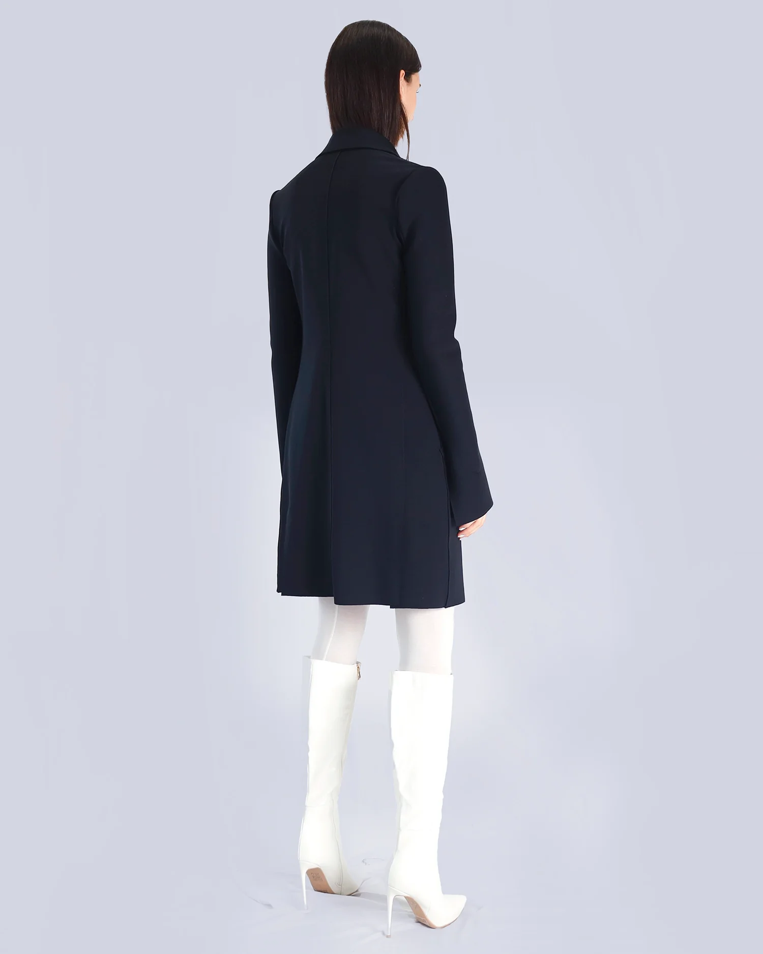 Classic tailored coat cut in fine scuba for a structured yet comfortable silhouette
