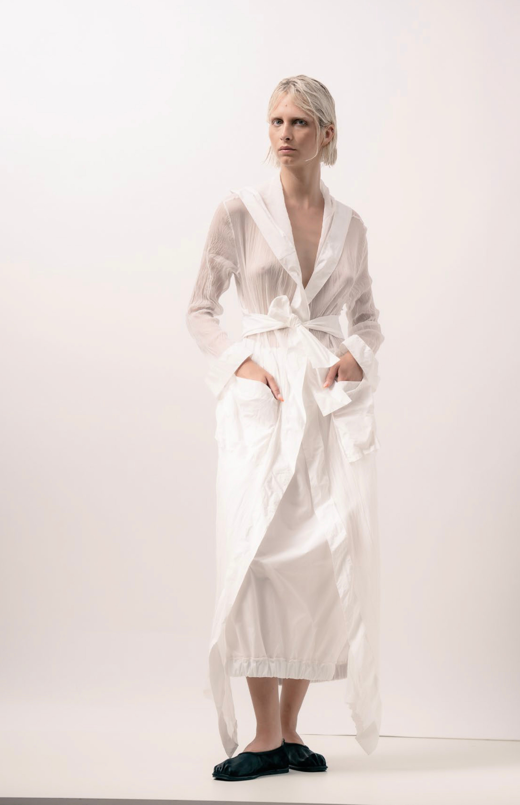 The Derasa1 coat elevates classic tailoring through refined details and modern finishes. Crafted in fine scuba, it features sharp notched lapels and signature frilled patch pockets that add texture and Maison character. Raw edges and slitted cuffs lend an architectural edge, making Derasa1 a timeless yet distinctly modern outerwear essential.