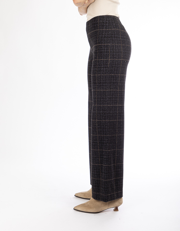 These tailored wide-leg trousers bring modern flair to classic heritage style with a striking windowpane check. The structured cut sits neatly on the waist, elongating the leg with graceful flow. Sophisticated yet bold, they’re a refined choice for statement suiting or elevated separates.