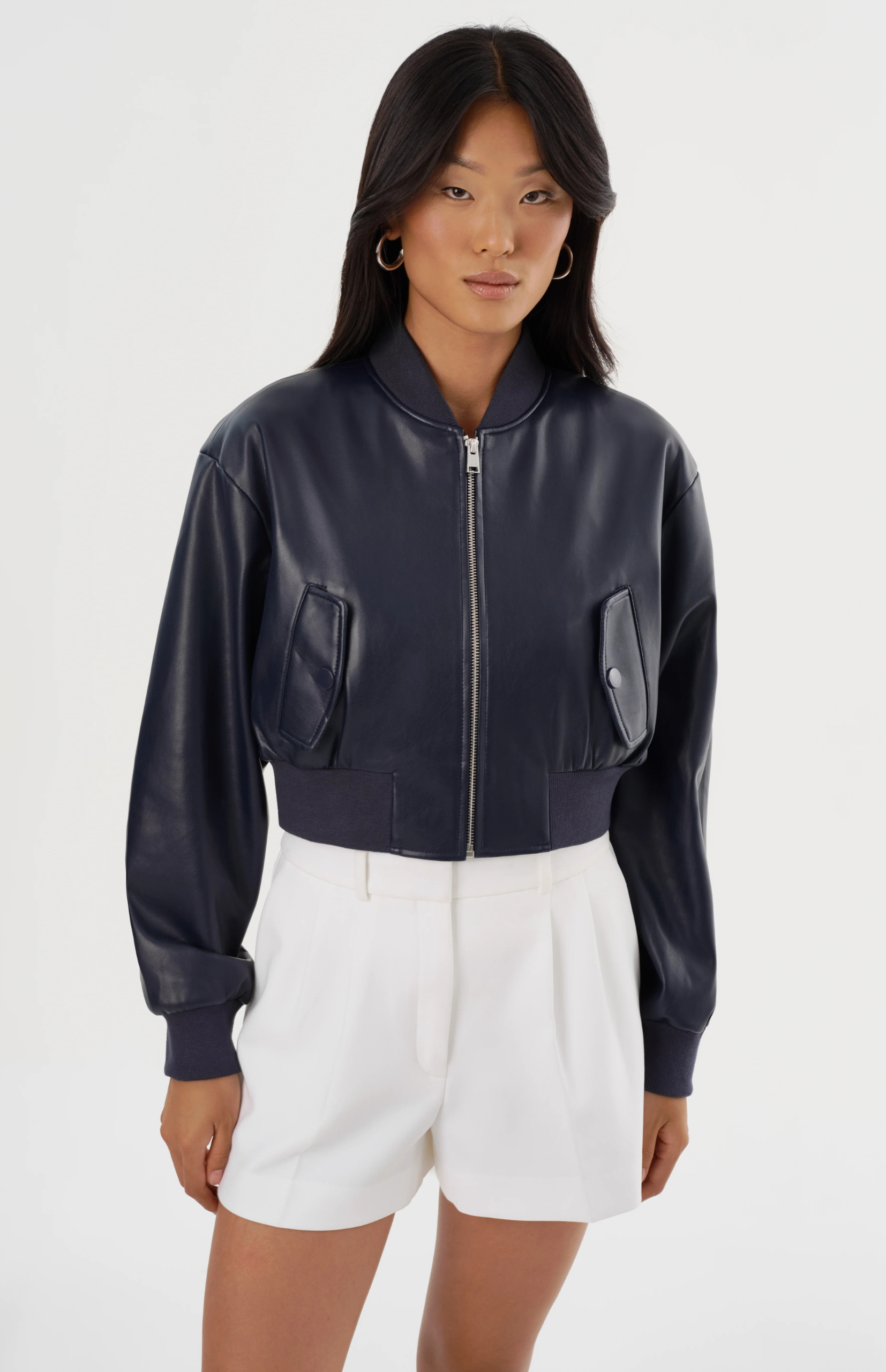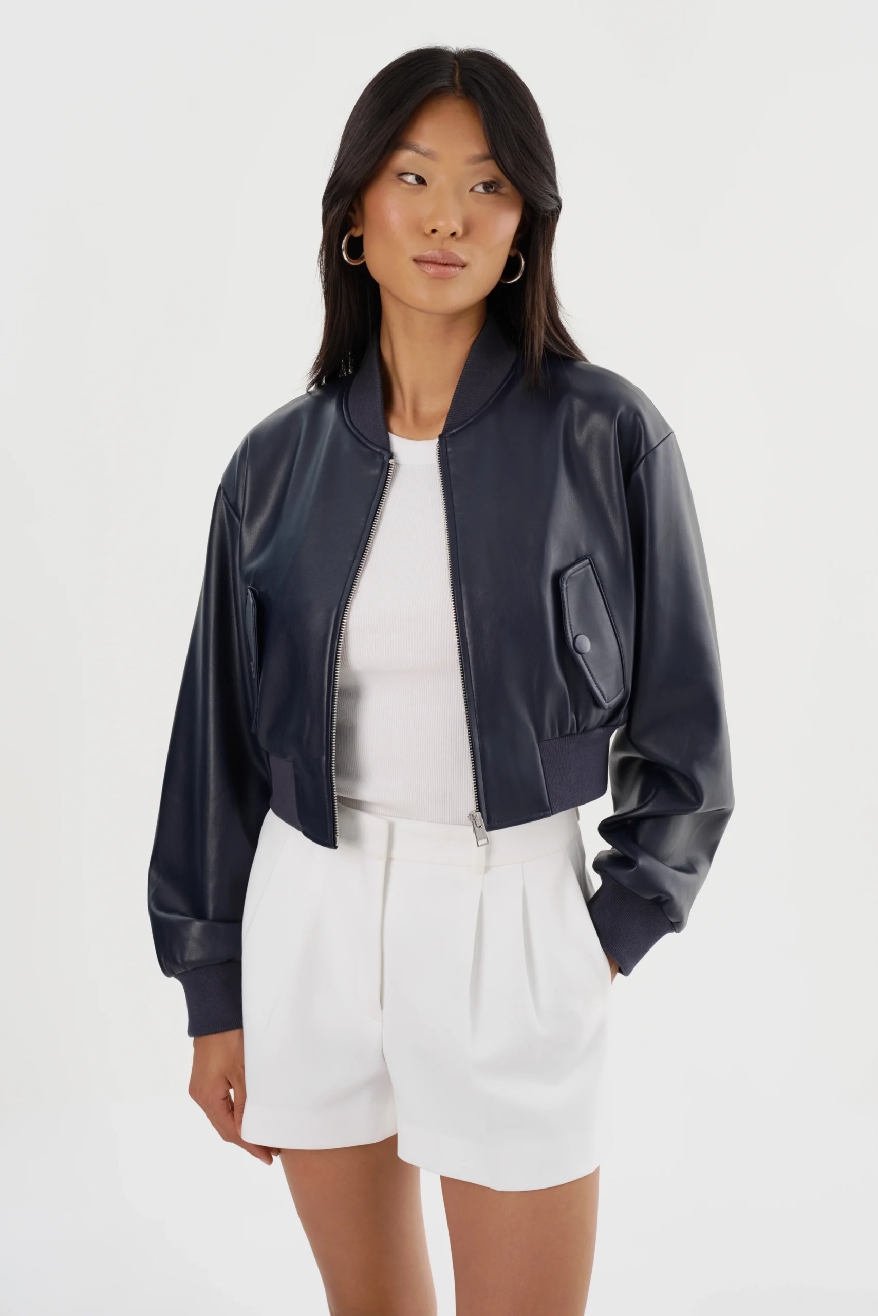 To say this faux leather crop jacket is a must-have would be an understatement. Crafted to perfection with every detail considered, its classic bomber shape is given a contemporary twist, making it a timeless piece that you’ll reach for time and time again.