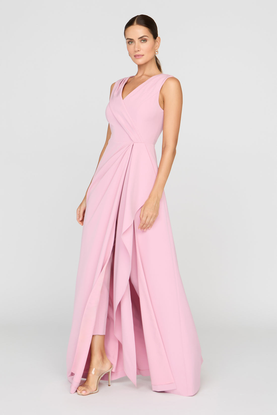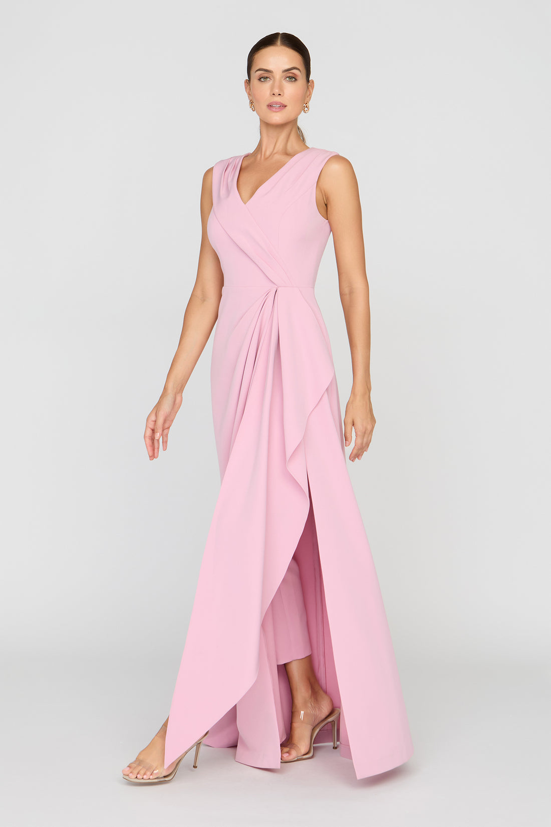 A statement belt cinches the waist, adding definition and a bold finishing touch that enhances the overall silhouette. Balancing structure with ease, this romper is perfect for warm-weather styling, day-to-night dressing, or elevated resort wear.