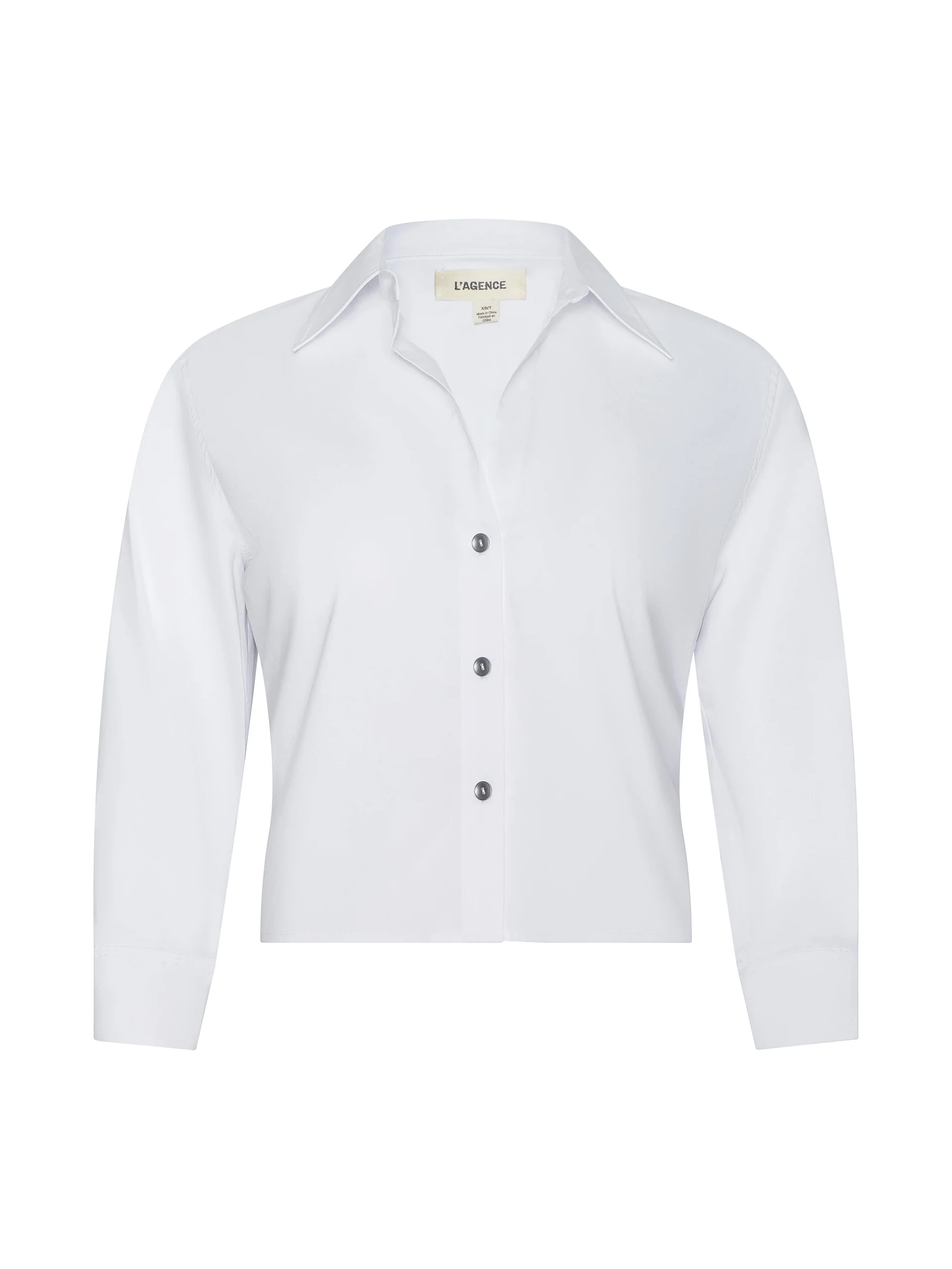 Classic from the front, statement from the back. The Fawn is a white button-down with a striking floral panther print.