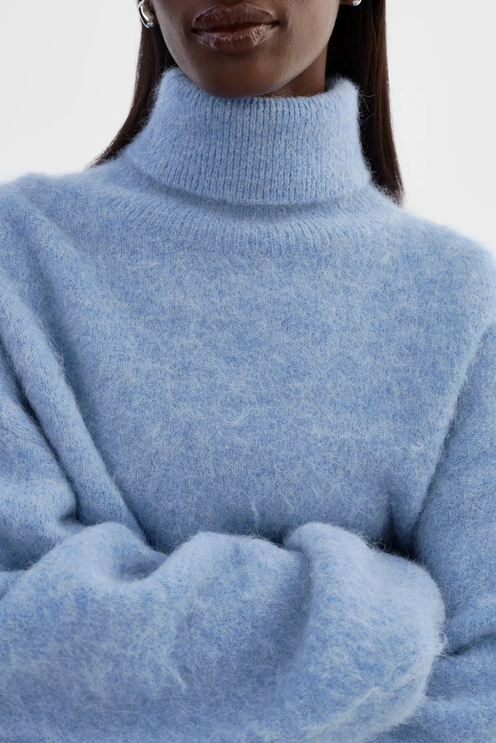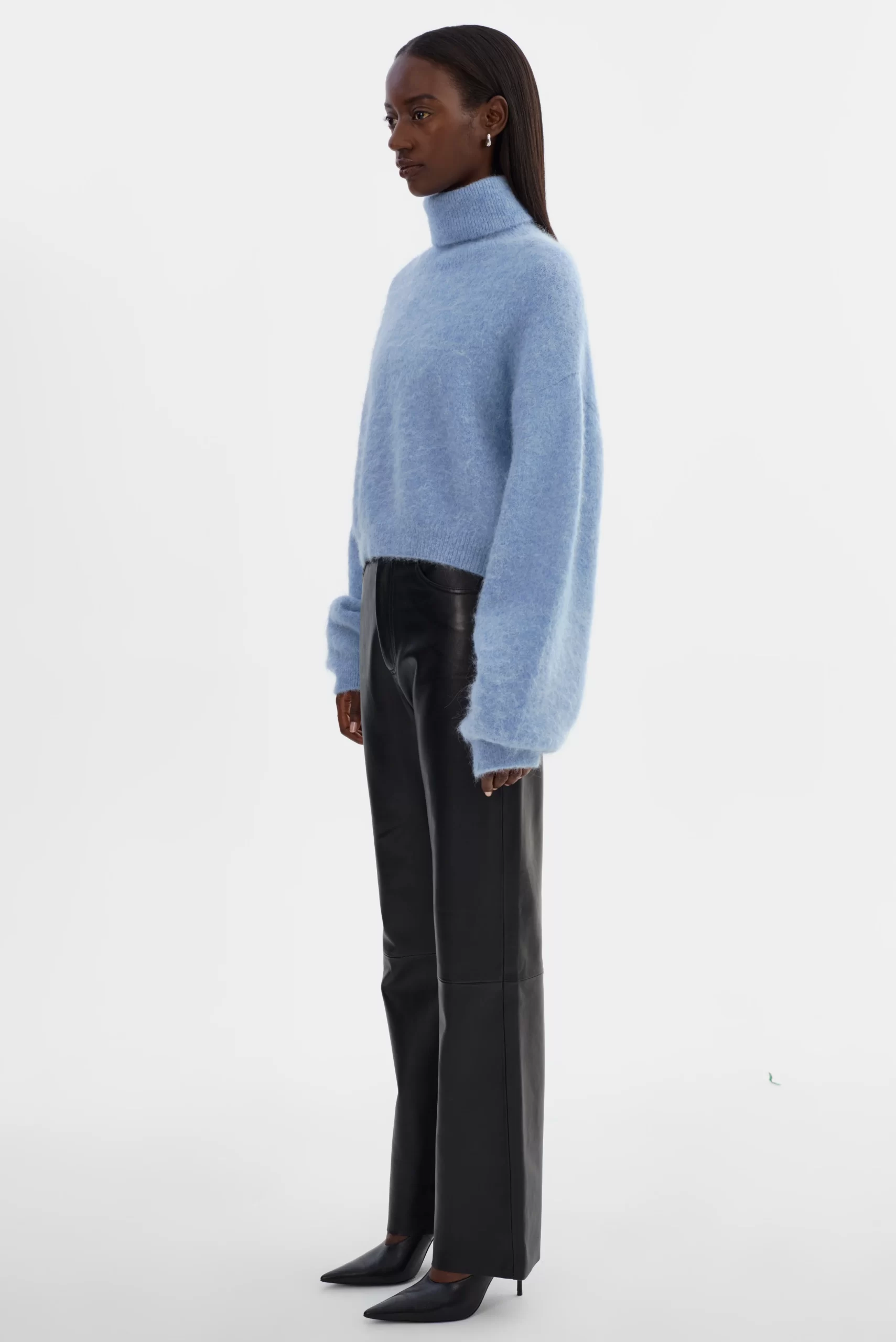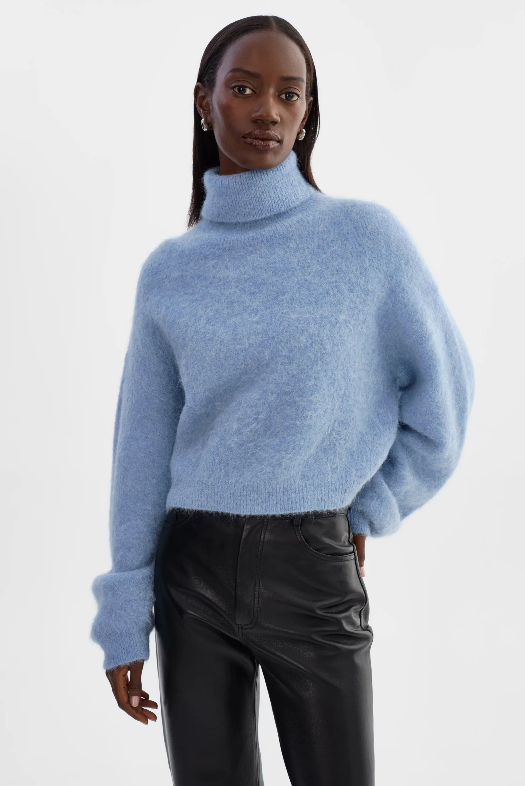 All about luxury and edge, the GARCELLE Wool Sweater is knitted from a plush alpaca blend that exudes sophistication. The loose fit and high-low hem add a modern, yet refined touch. Featuring a cropped length, bold turtleneck, and balloon sleeves, it’s perfect with high-waisted jeans for an effortless, casual look or with the matching TARAN Wool Pants for the ultimate cold-weather statement.