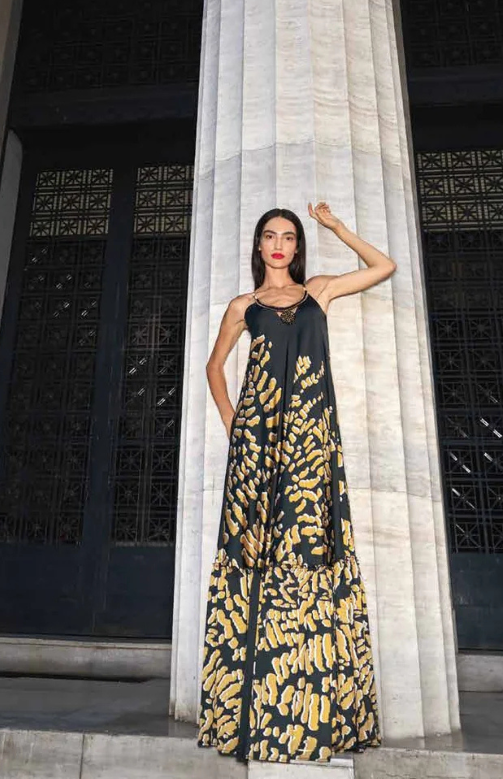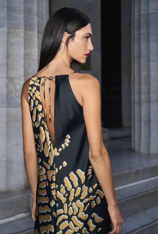 LONG SOFT DRESS, ANIMAL PRINT WITH BLACK BASE.