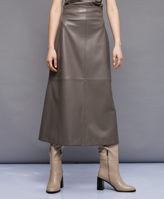 Midi faux leather skirt with inner lining and back zip closure. A timeless choice for elegant looks.