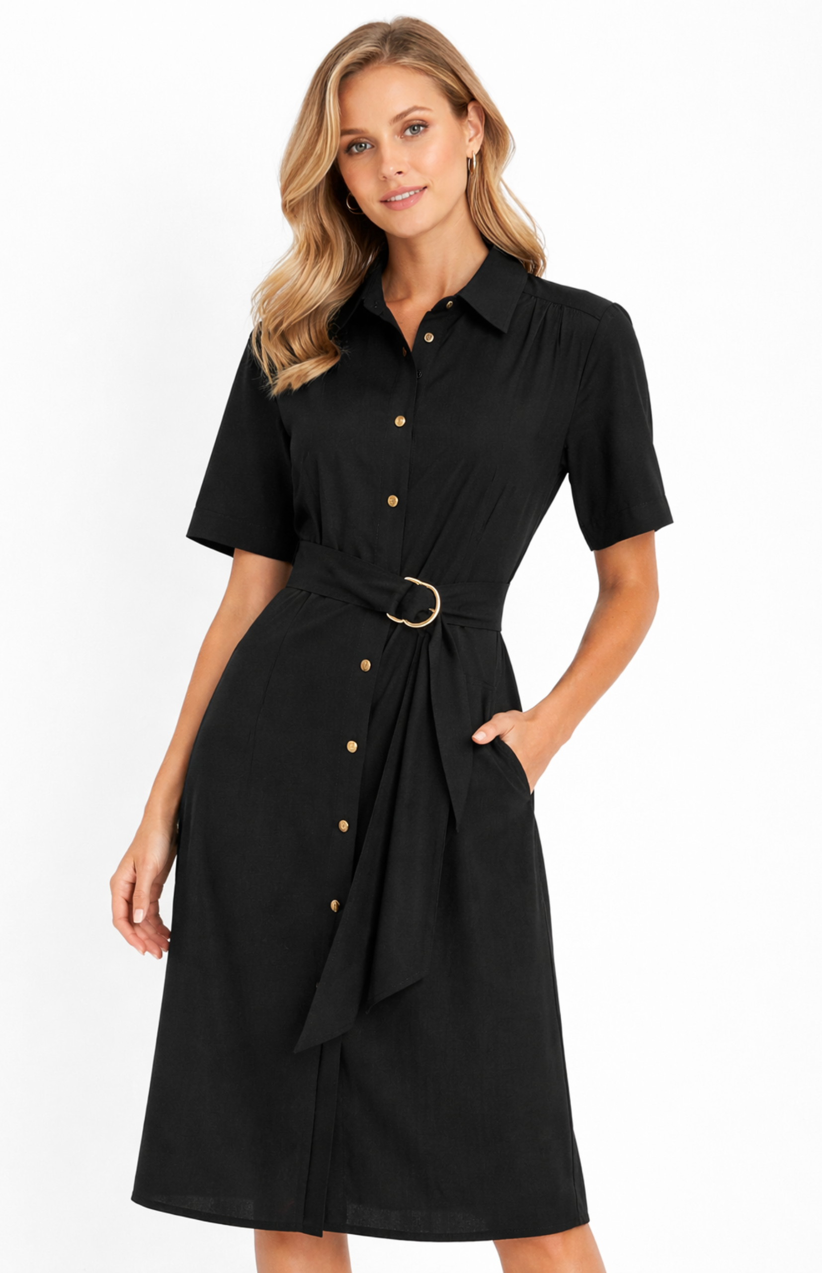 - Classic shirt dress silhouette