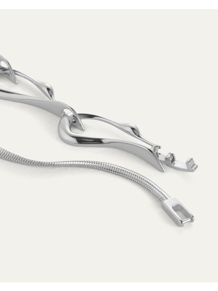 A dynamic design of two connecting hoops, the Jax Necklace features a long bar that swings at the bottom of the hoops. We love the sleek and playful design of the Jax Necklace.
