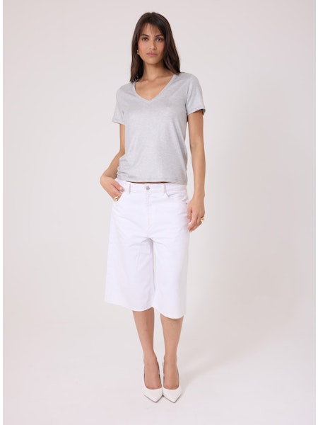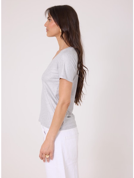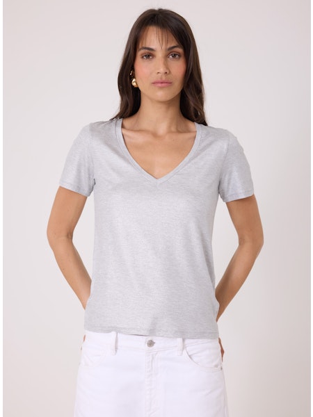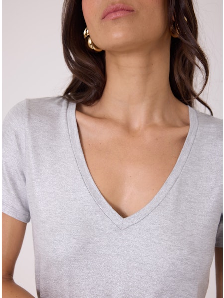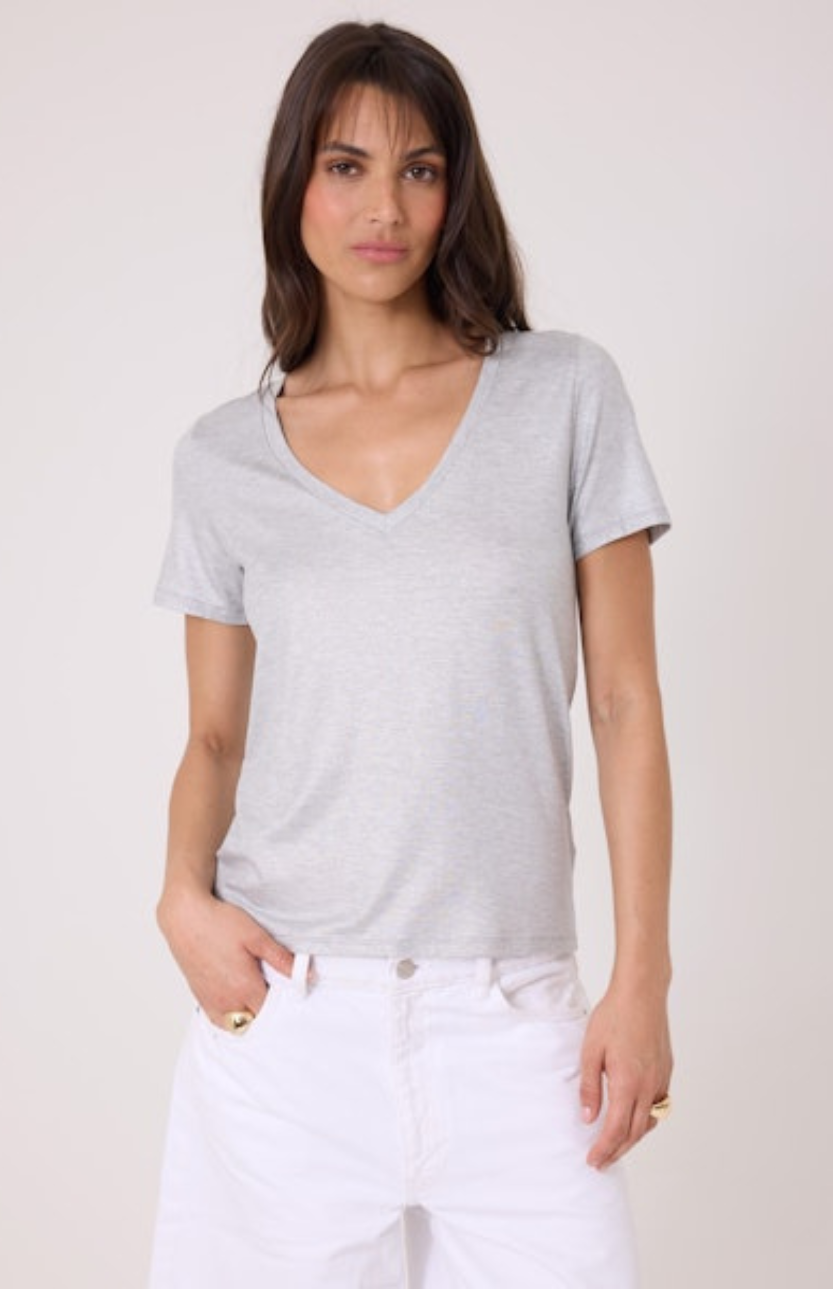This soft touch metallic short sleeve v-neck tee features a luxurious second-skin fit. Subtle shimmer. A unique and sumptuous blend of the highest quality fibers, this tank is ultra-soft, color fast, anti-microbial, and lightweight. Your second skin layering piece. The fabric will never pill, stretch, fade, or wrinkle.