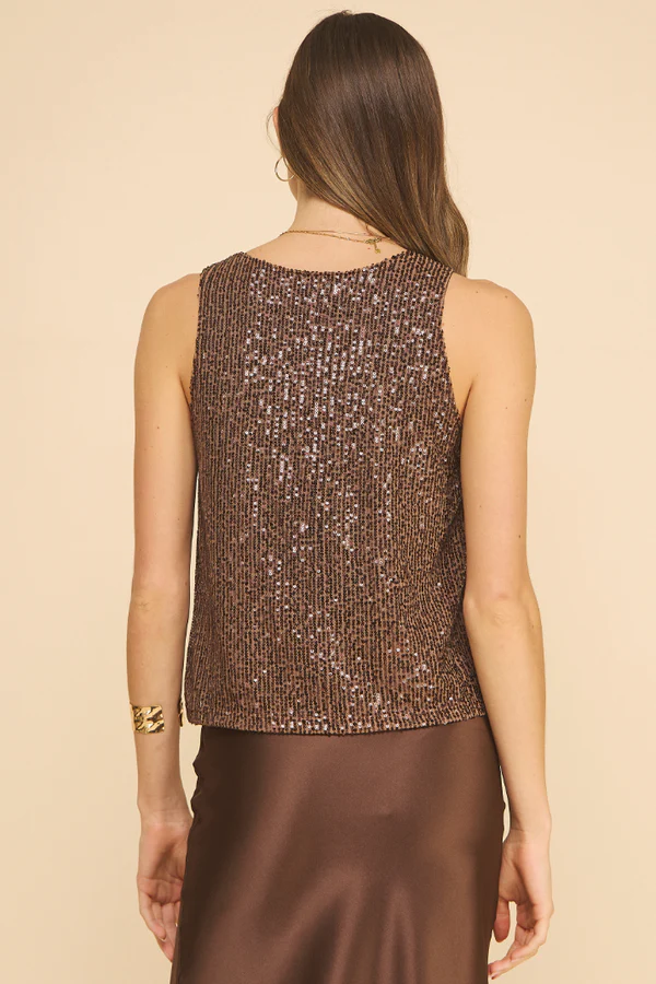 With shimmery and delicate sequins, this eye-catching top is ready to be worn on your next rendezvous! Makes for perfect pairing for jeans or dressier shorts, add a layer of your favorite blazer on those cooler nights.