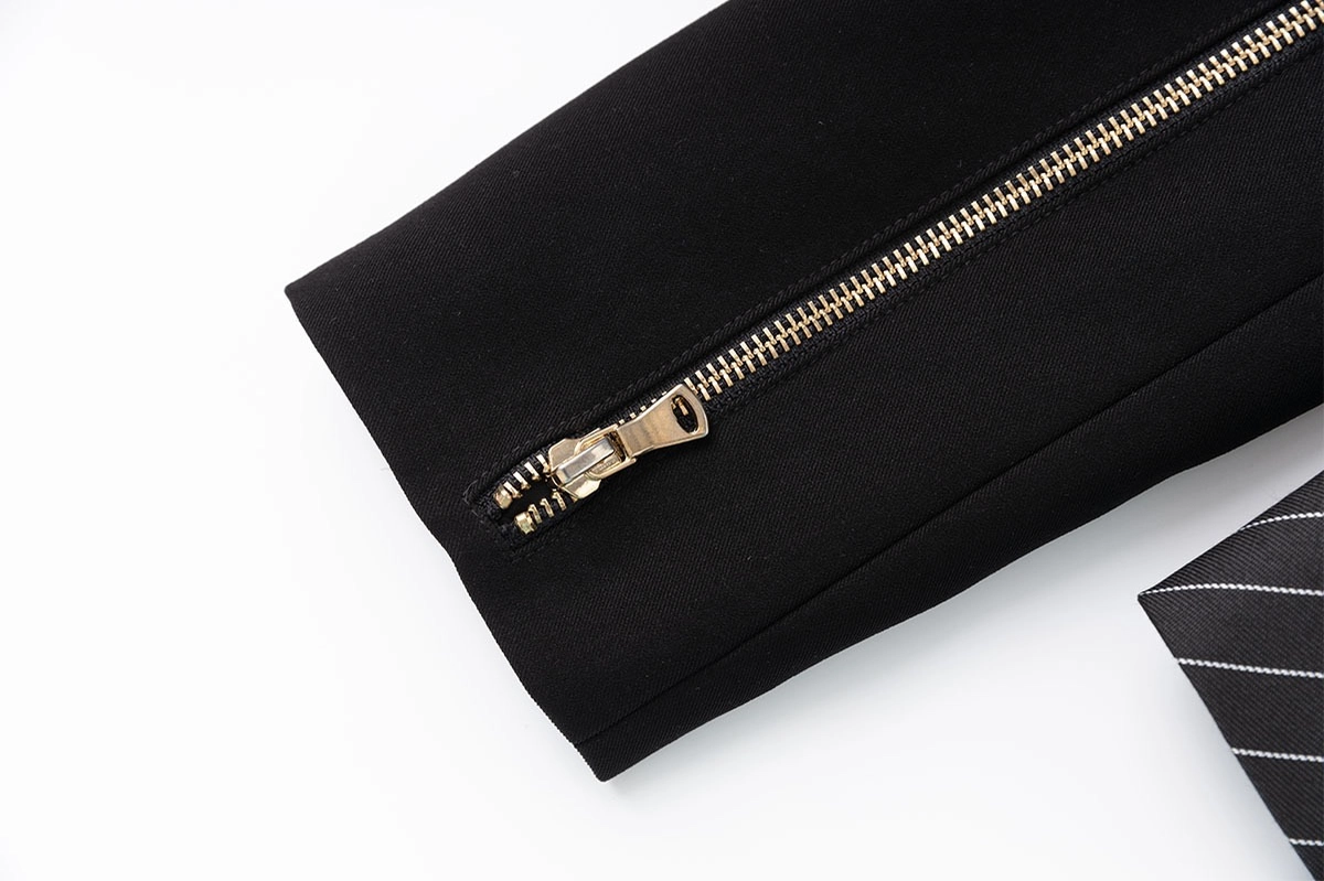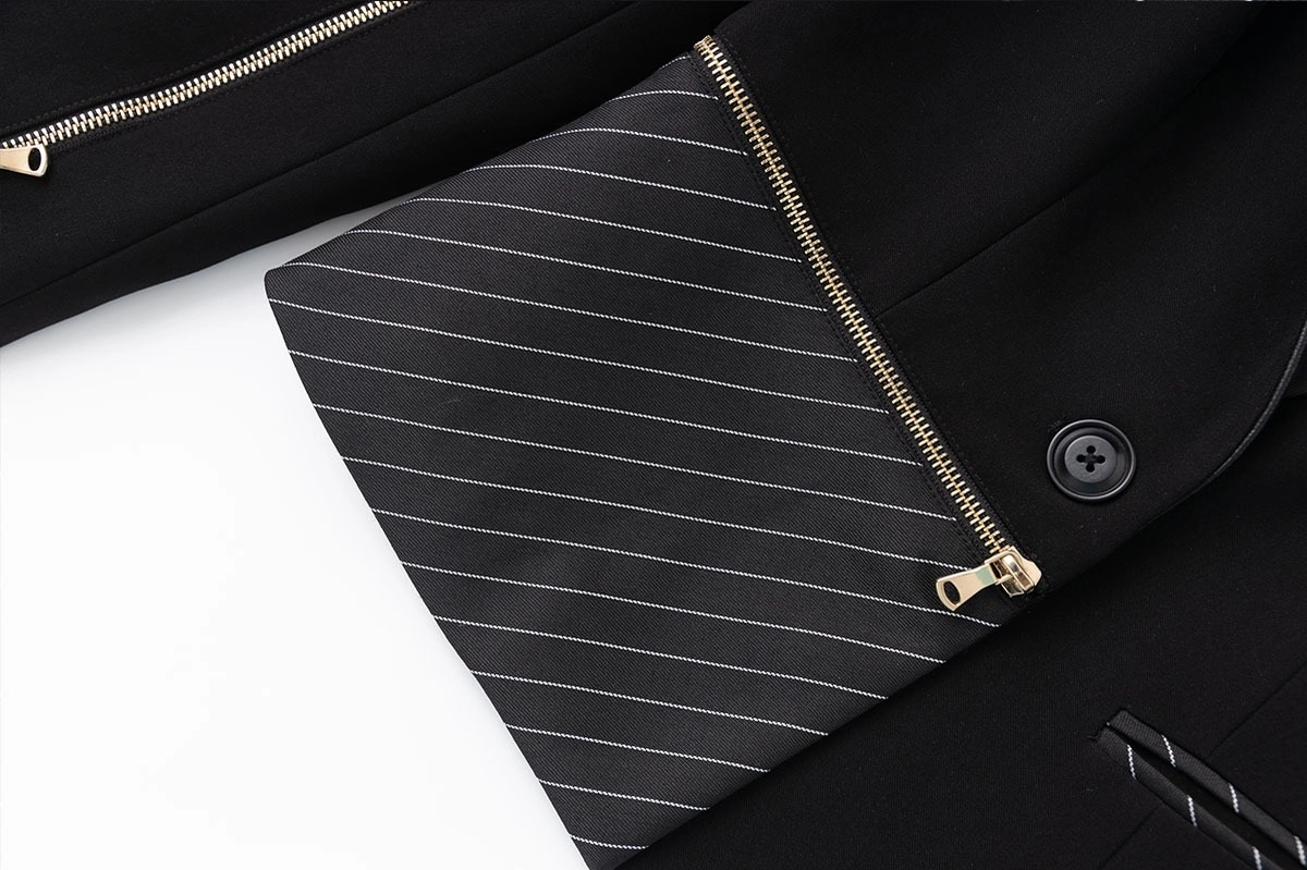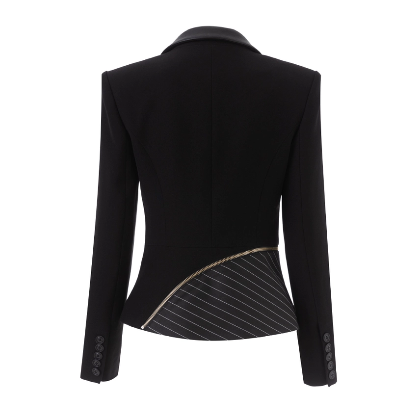 This tailored Matty Colour block blazer is crafted with precision hand-stitching and artisanal attention to detail, featuring bold colorblock stripes and a unique zipper accent for a modern twist on classic suiting. Designed with a cinched waist for a flattering silhouette, this piece blends professional polish with contemporary fashion. The high-quality handmade construction ensures durability and comfort, while the structured yet versatile design makes it ideal for office wear, business casual, or elevated everyday looks. Perfect for fall and winter layering.