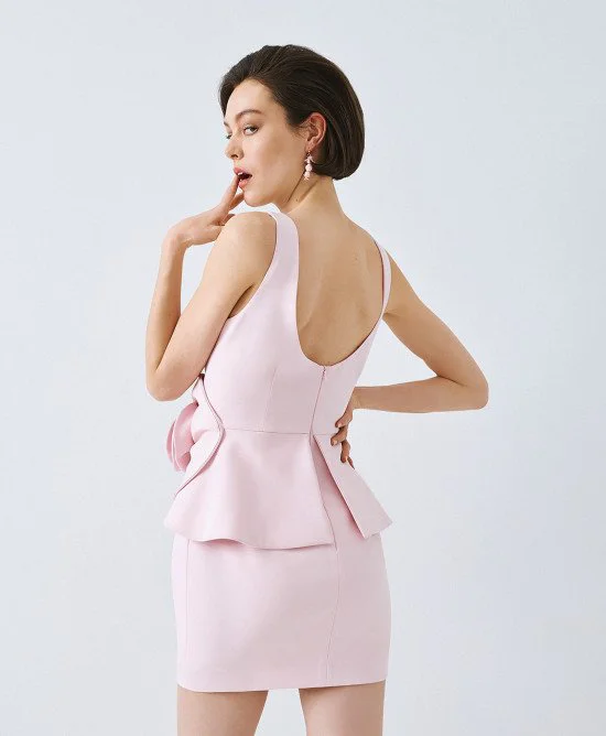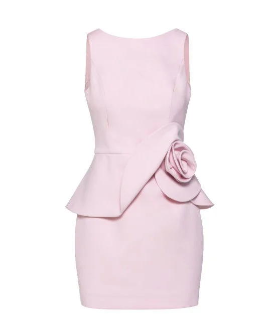 This tailored sheath dress is designed to flatter with clean lines and a sculpted silhouette. Crafted in a refined stretch fabric, it features a timeless bateau neckline and a striking exposed back zipper for a modern edge.