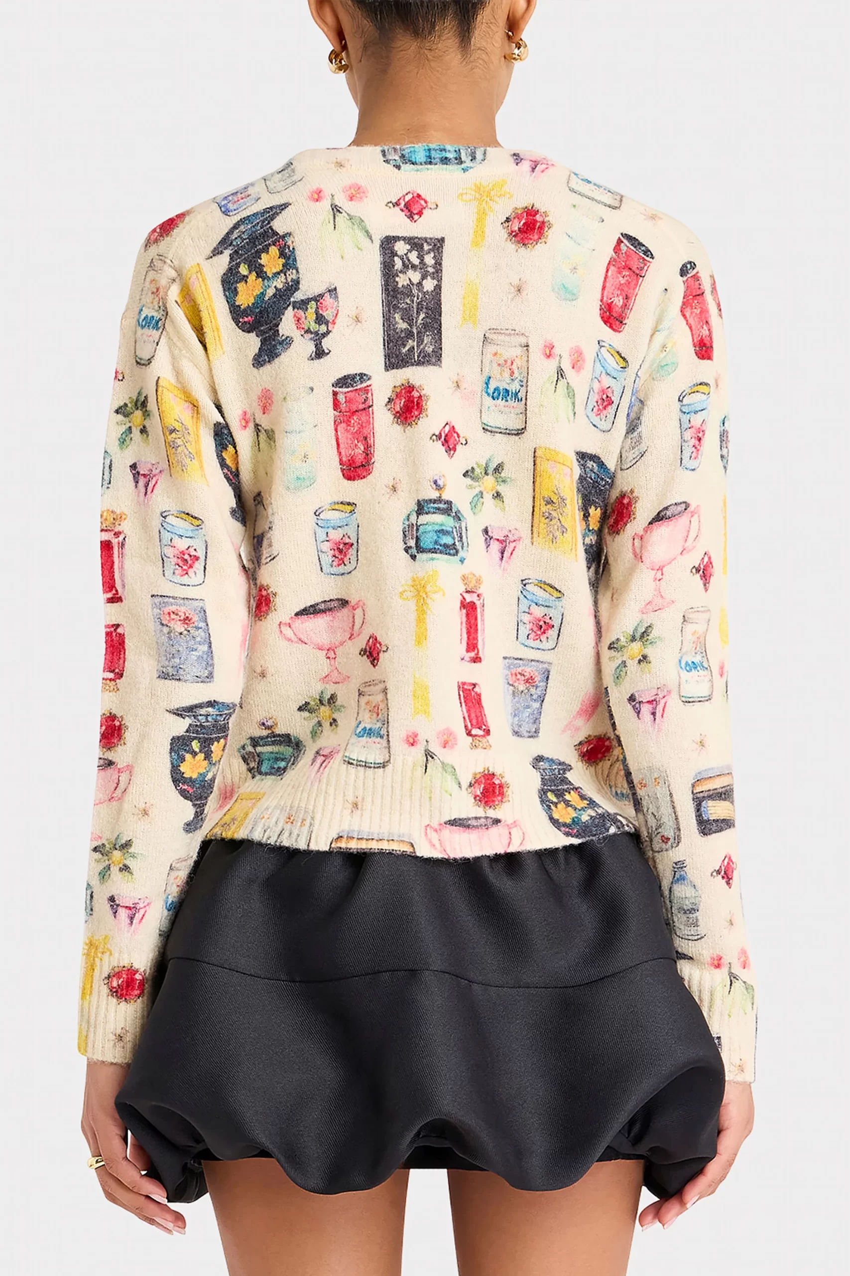Stay sweet in the Nancy Cardigan. This cozy knit with a fun, vintage-inspired Treasure Print pattern adds charm to any outfit. Wear it with your favorite light-wash jeans—perfect for weekend plans.