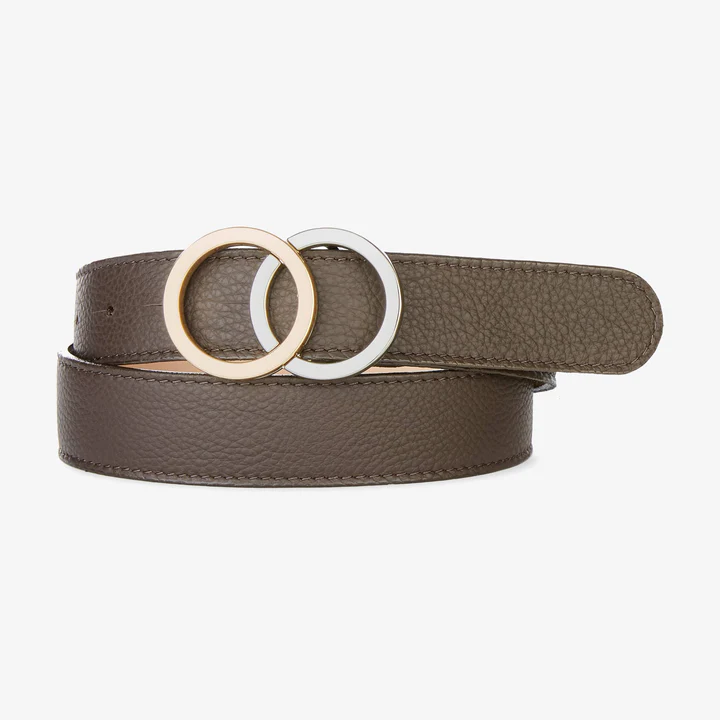 Our popular Otir belt features a distinct double ring buckle in mixed metals. This statement piece is a great addition to your favourite looks! Paired with our classic vegetable tanned pebbled leather.