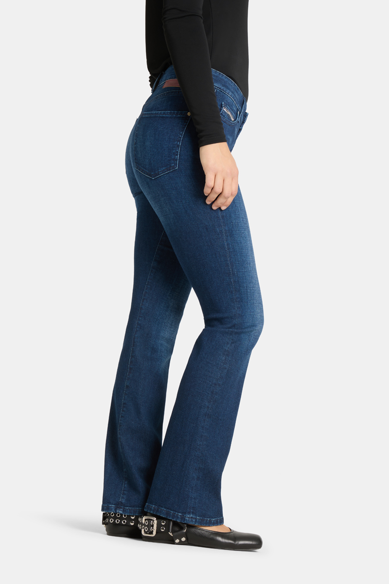 A timeless wardrobe essential, the Paris Jean offers a sleek, flattering silhouette with a modern bootcut leg. Crafted from premium stretch denim, this mid-rise style provides exceptional comfort and shape retention. The rich indigo wash features subtle fading for a naturally worn-in look, while the clean finish ensures effortless versatility. Perfectly tailored to elongate the leg, this jean pairs beautifully with everything from tailored blouses to casual knits.
