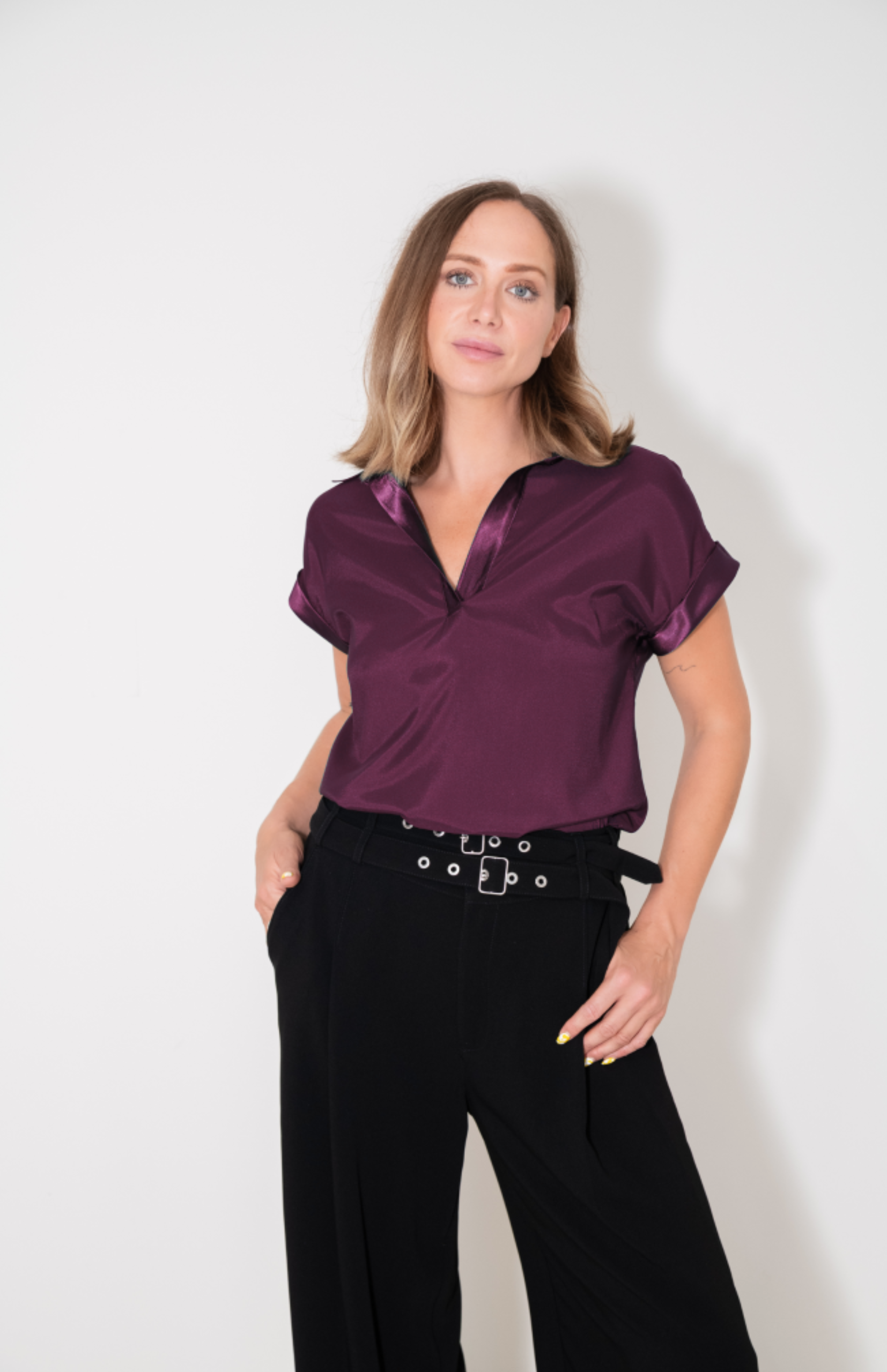 Effortlessly refined, the Penelope Blouse is crafted from a smooth blend of 97% polyester and 3% spandex for a soft, fluid drape with a touch of stretch. This timeless style features a relaxed silhouette with a soft collar, short cuffed sleeves, and a subtle V-neckline that flatters every frame. Lightweight and easy to care for, it offers an elevated take on a classic staple—perfect for both polished office looks and casual elegance.
