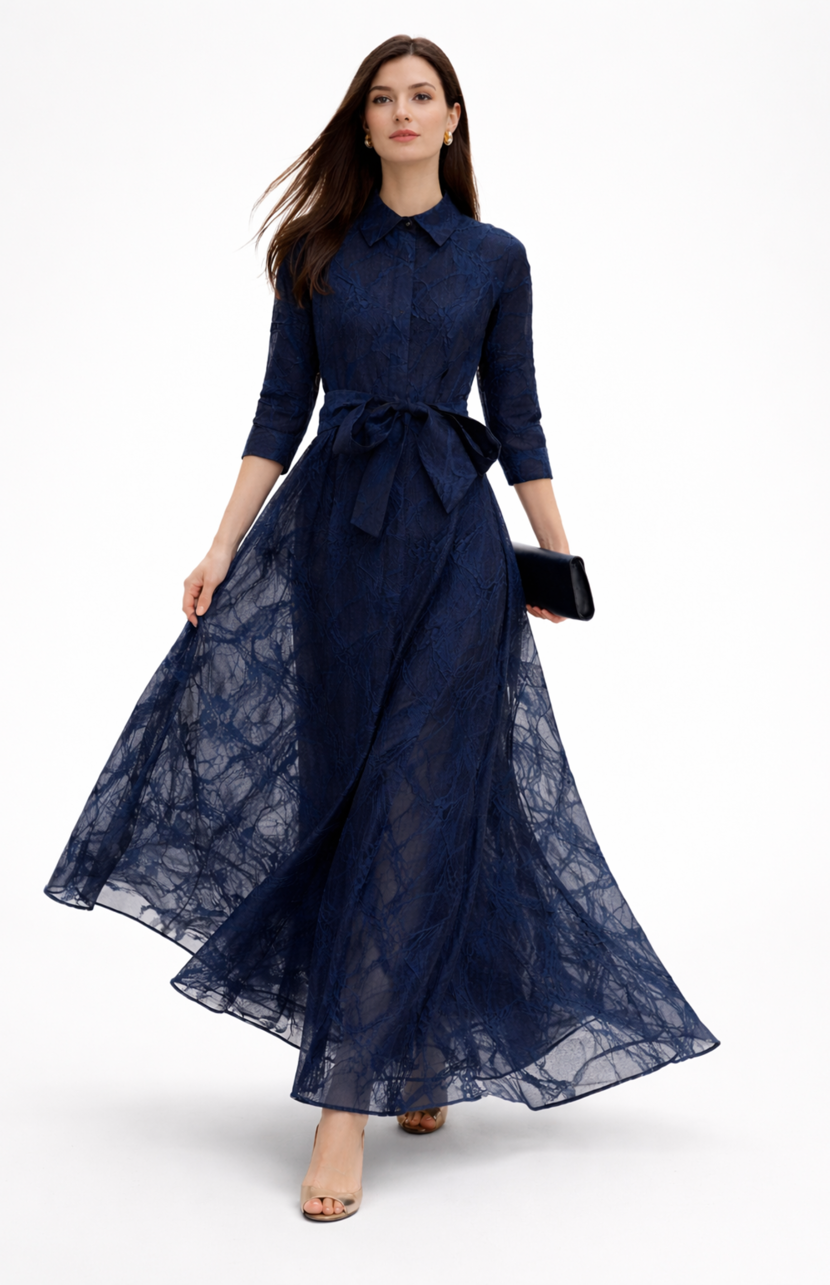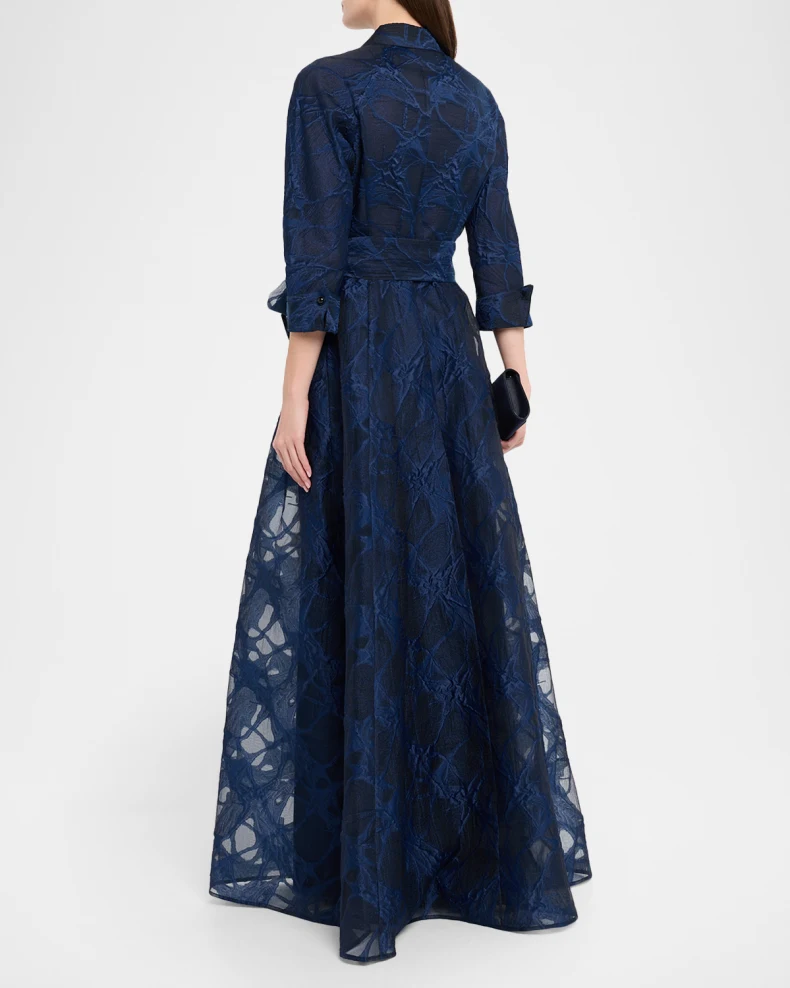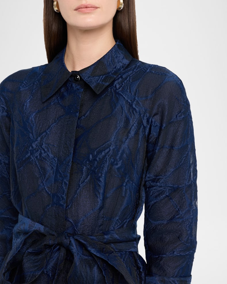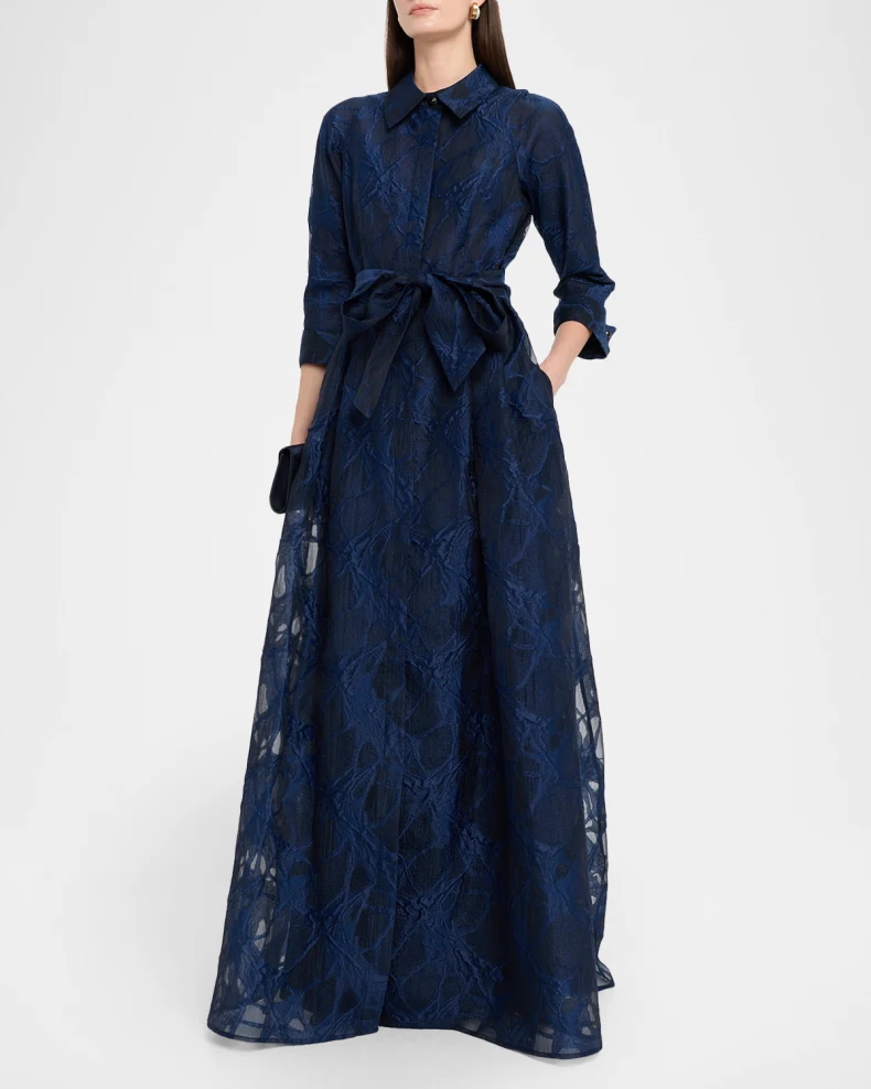 This Rosin shirt gown is crafted in a jacquard organza, finished with a removable waist self-tie to define the figure