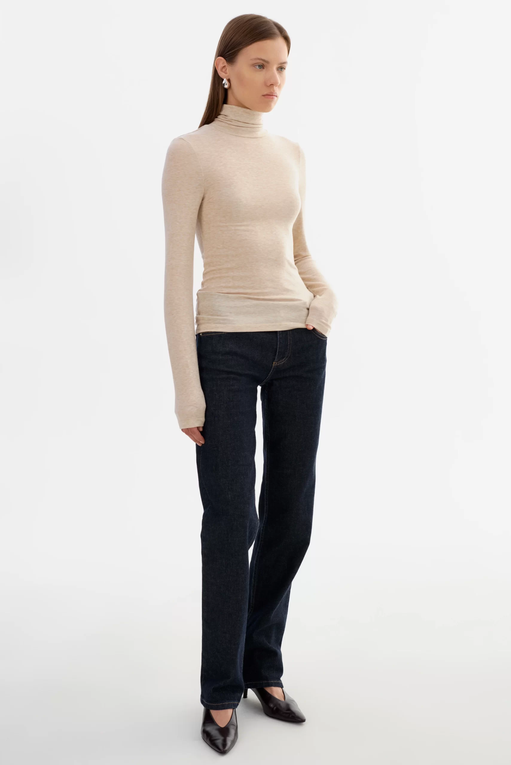 The SADIE Long Sleeve Turtleneck is a minimalist staple with a refined finish. Featuring a soft mockneck and a slim, elongated fit, it’s designed for comfort and everyday versatility. Lightweight and timeless, it layers effortlessly or stands alone as a clean, elevated essential.