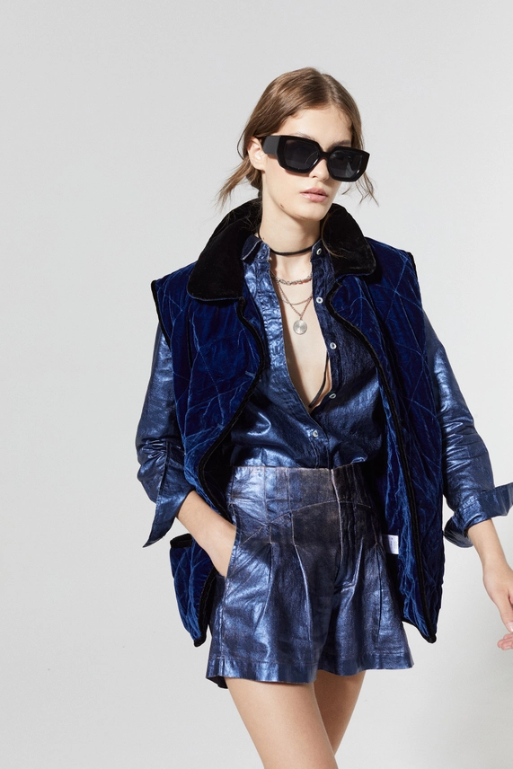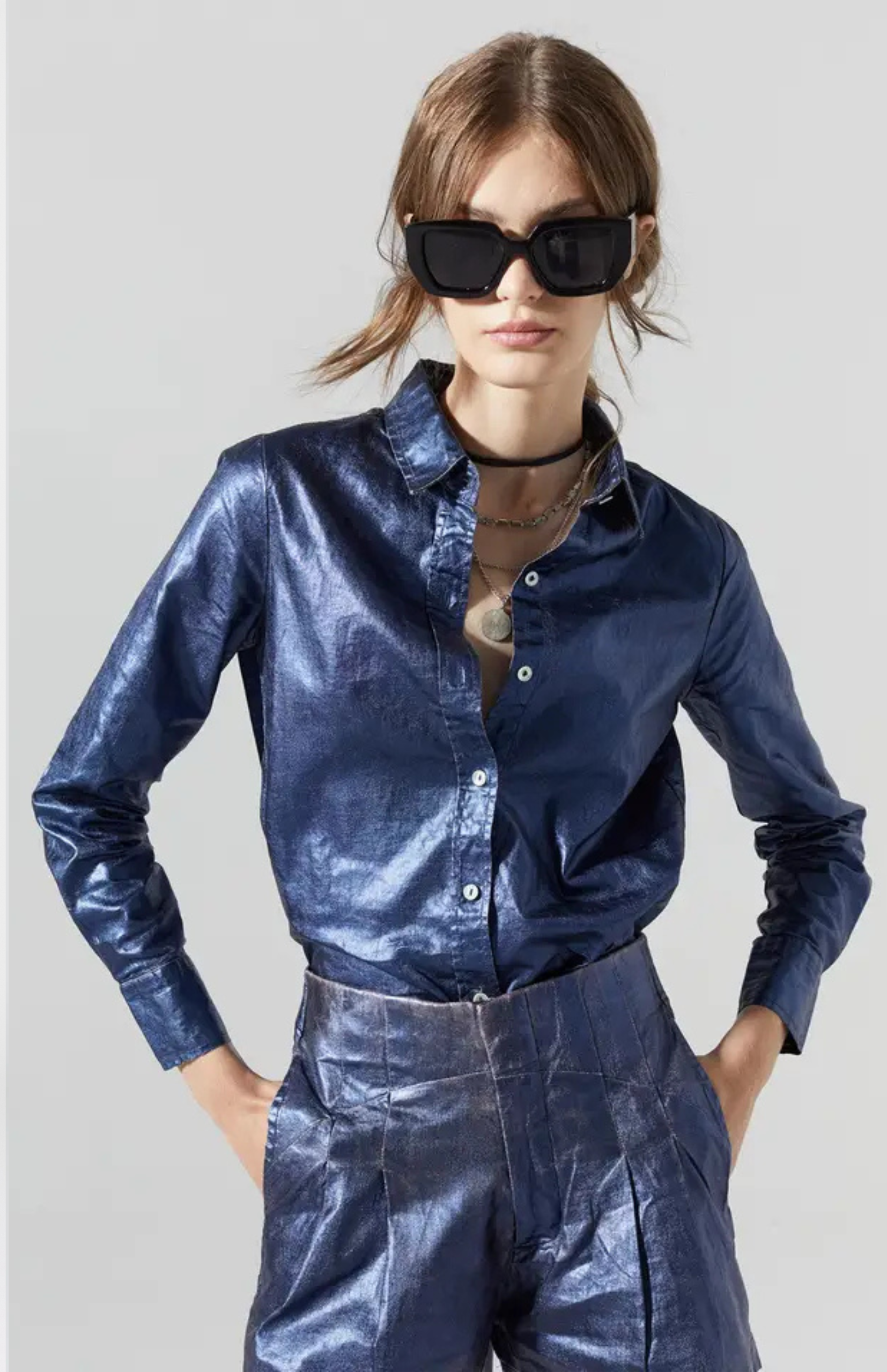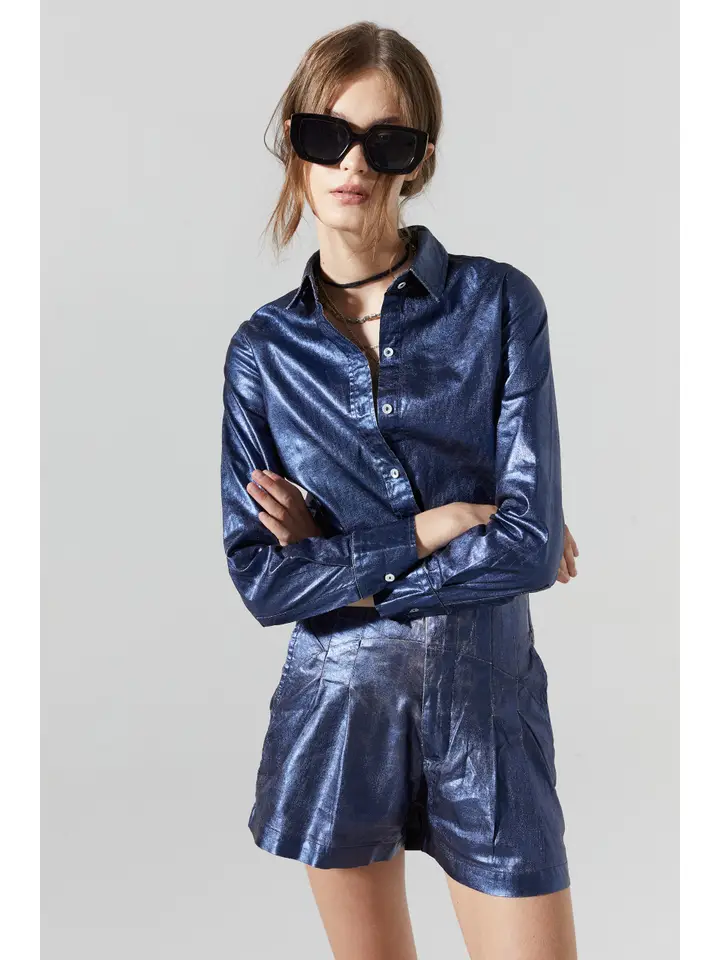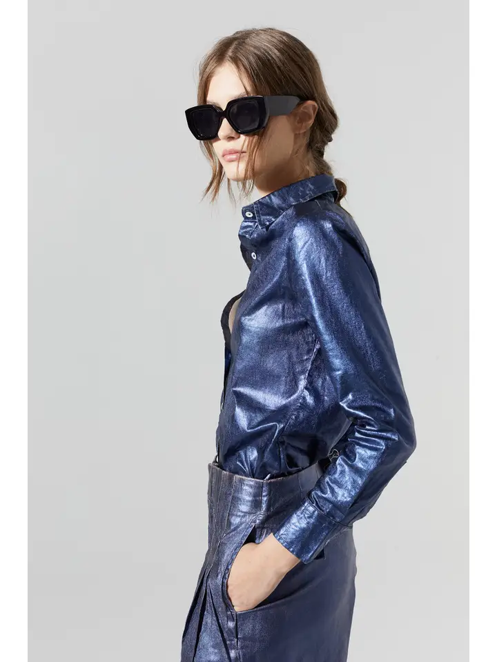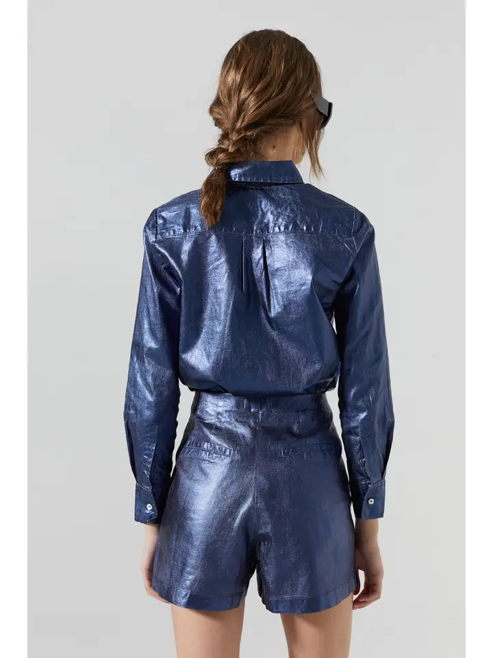 Our metallic San Marino linen shirt is the perfect elevated statement piece to have on your wardrobe. It is made of 100% organic linen with a metallic foil print, and its curved hemline is longer on the back for a super flattering silhouette. Roll up the sleeves to just below the elbow for a carefree chic vibe.