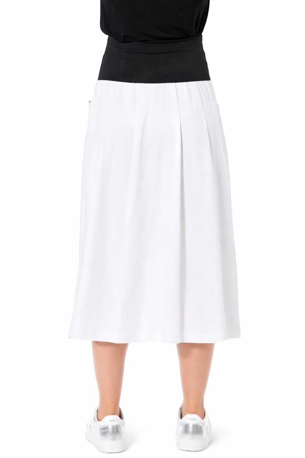 This A-line skirt blends clean structure with functional design. A full-length front zipper starts just below the elastic jersey waistband and runs all the way to the hem – it can be opened from the bottom, allowing for adjustable styling. Vertical panel seams define the shape, while integrated side pockets add practicality. A skirt that’s both sleek and surprising – modern, adaptable, and smart.