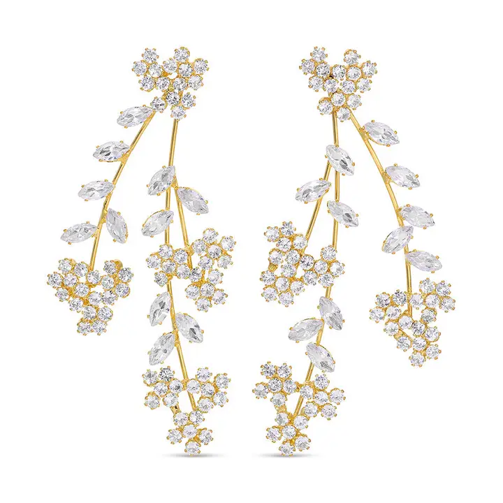 Capture the beauty of nature with the Serenity Leaf Dangle Earrings. Reminiscent of flowering tree branches, these golden earrings feature ornate glass crystal leaves and flowers. Perfect for formal events and special occasions, they add a unique and elegant touch to your look. Product Details: * Metal: Alloy * Stone Type: Glass Crystal * Measurements: Approx. 2.5″ * Closure: Pushback