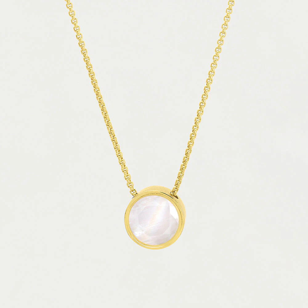 The Signature Knockout Pendant features a multi-faceted, brilliant-cut gemstone suspended on a fluid, adjustable box chain.
