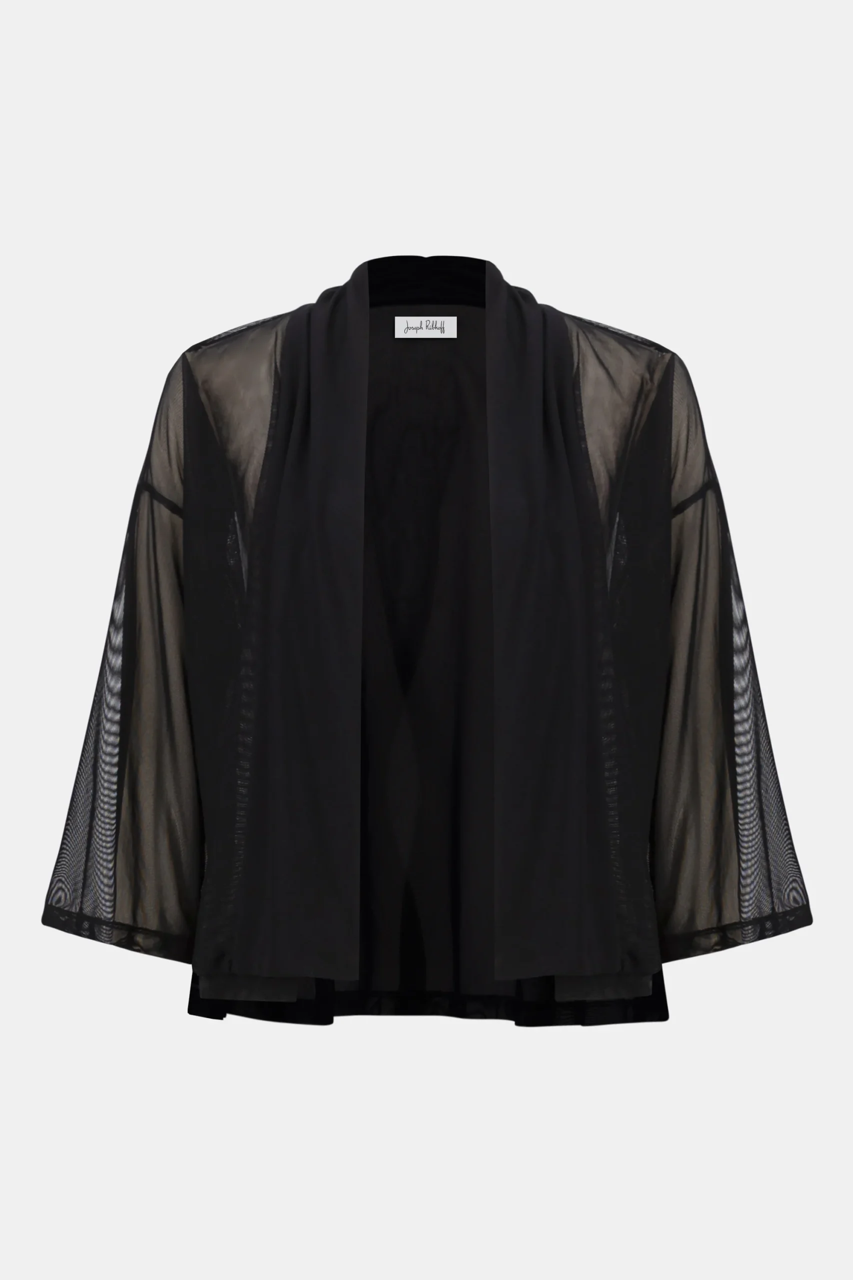 Light and effortless, this mesh cover-up is paired with silky knit for a fluid drape. The open front and three-quarter sleeves make it the perfect layering piece for day-to-night ease.
