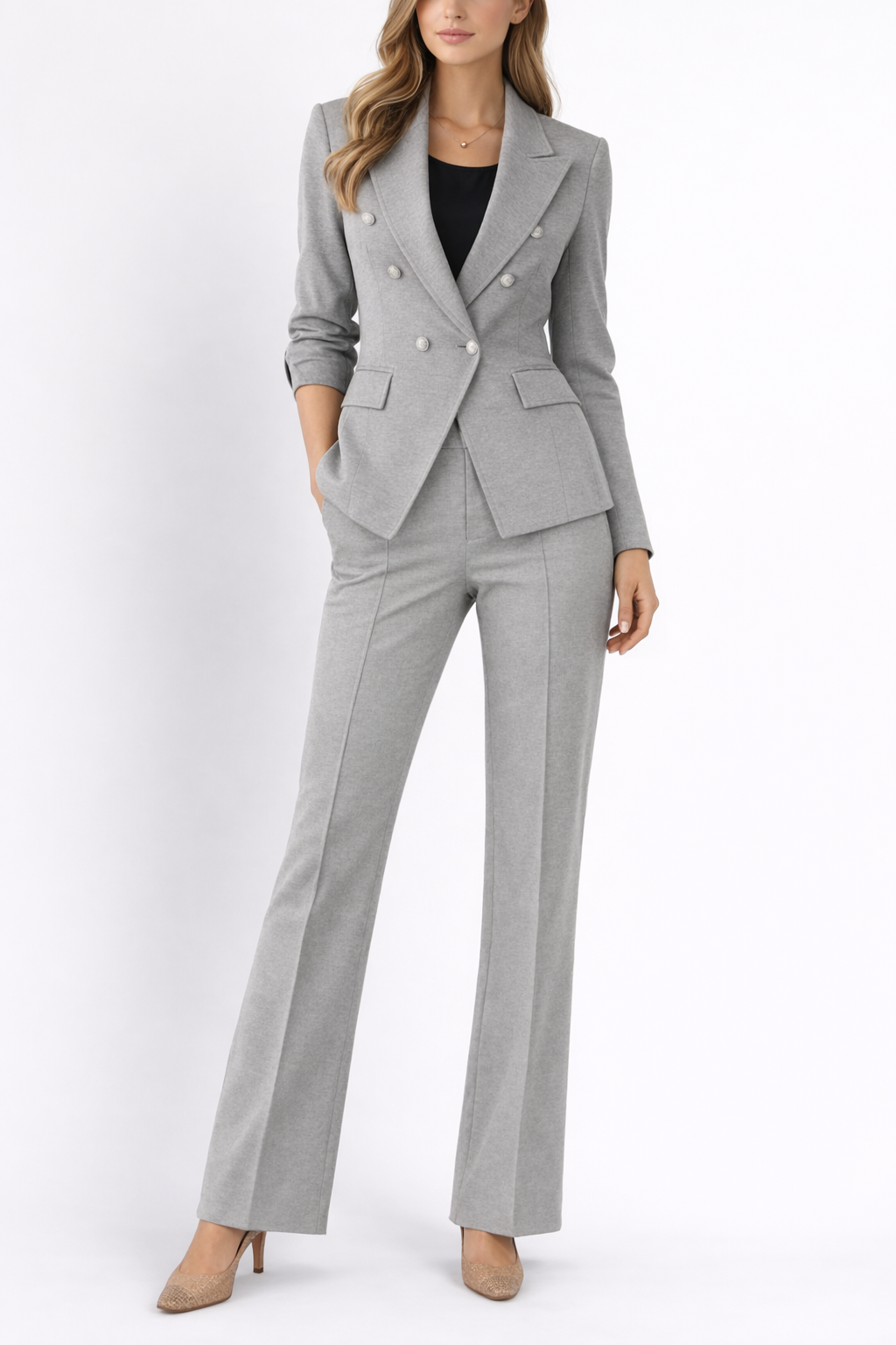 A refined statement piece, this double-breasted blazer blends classic tailoring with a modern, feminine silhouette. Designed to elevate any look, it offers structure while maintaining a soft, flattering fit.