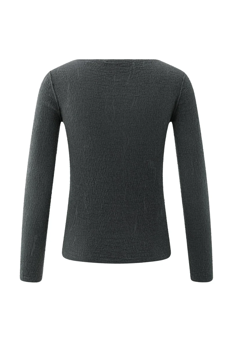 This soft fine knitted top features a round neckline, long sleeves and a fitted fit. The subtle textured fabric adds an elegant touch to the design. Made from a comfortable stretch quality, perfect for layering or wearing on its own. The hip-length cut makes it easy to pair with your favourite pieces for any occasion. The model is 175 cm and wears size S.