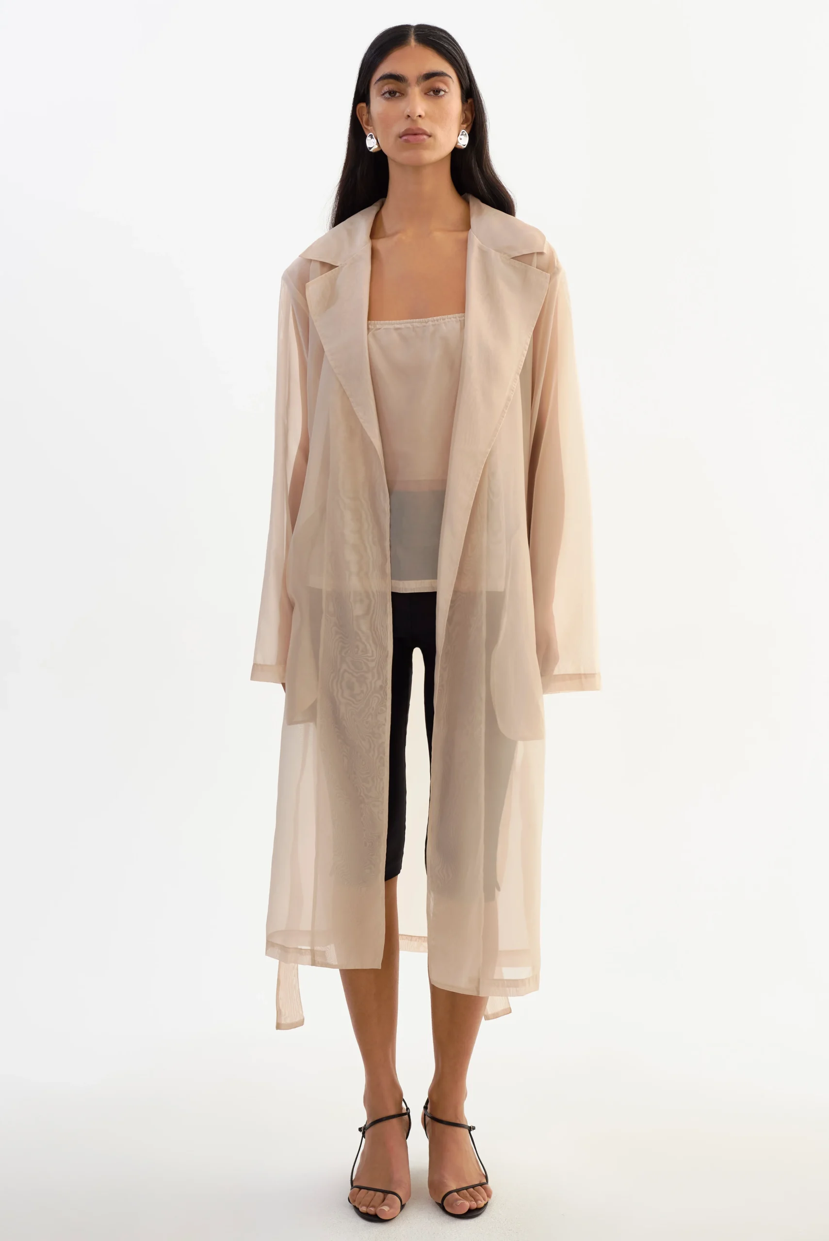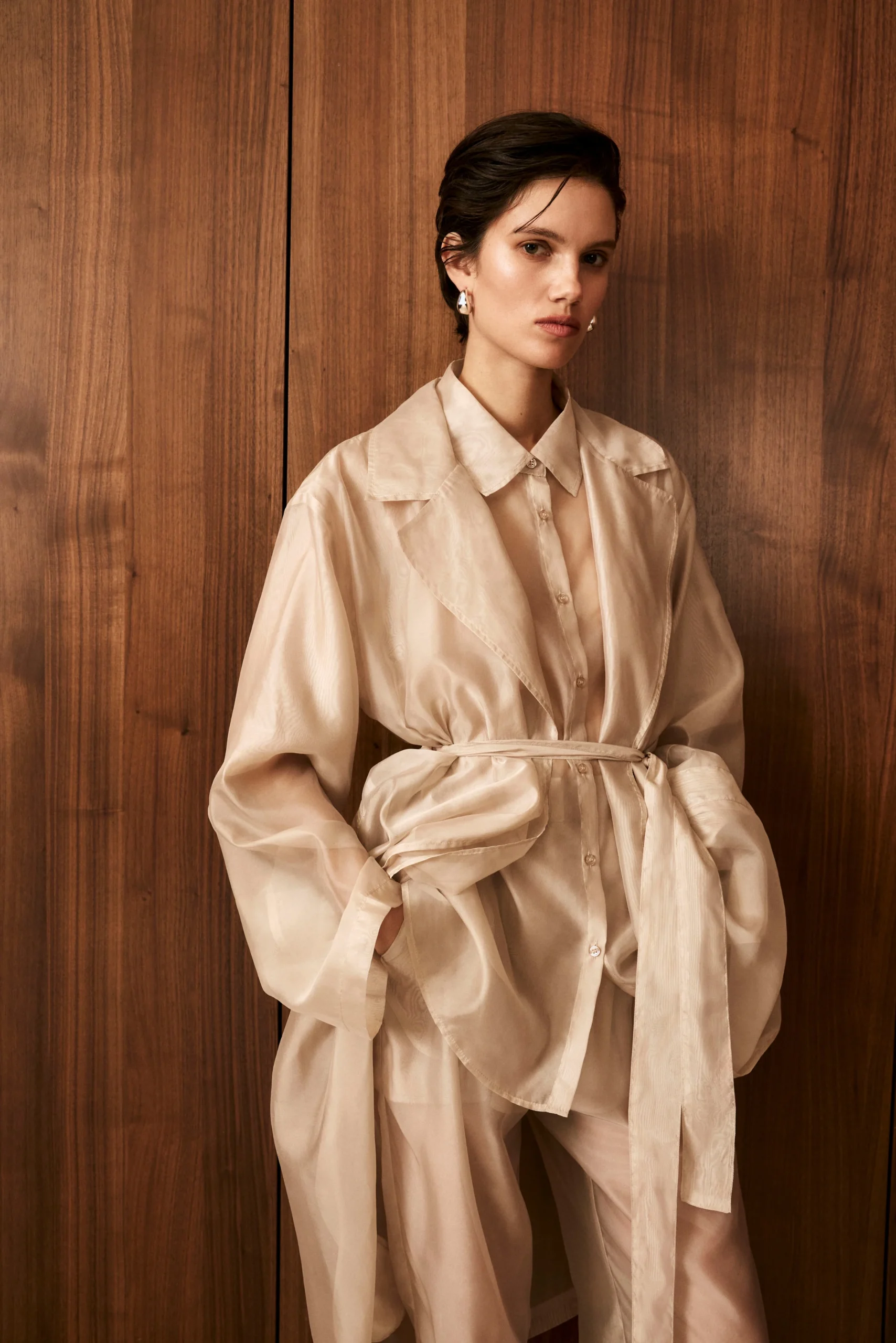 The TALISE long sheer coat adds a soft layer of elegance to warm-weather styling. Light and airy, it drapes effortlessly over the body, offering coverage without weight. Designed to move with ease, it brings a refined finish to both day looks and evening moments.