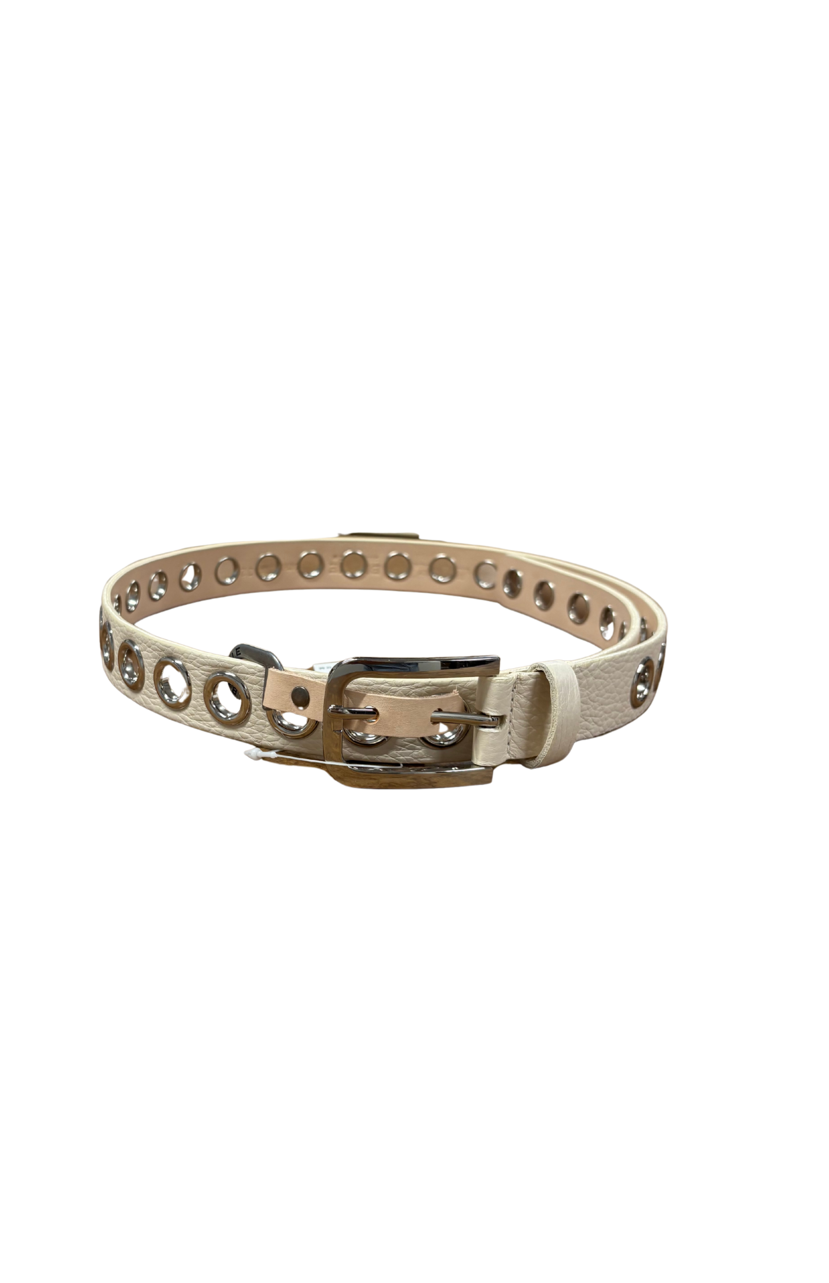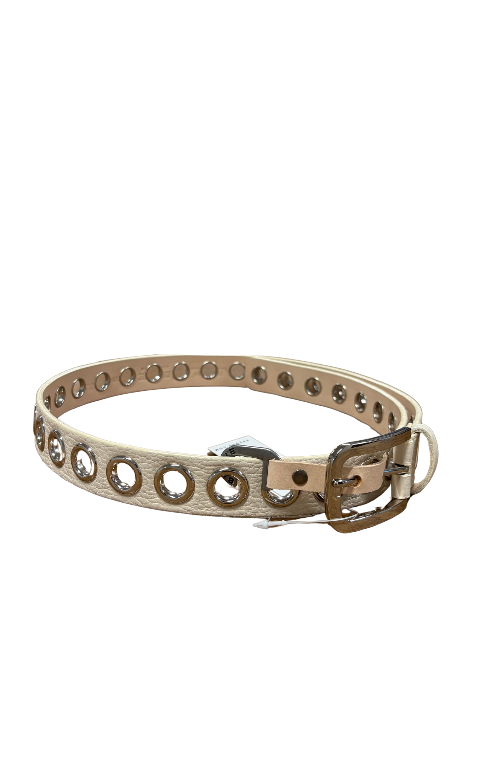 Tally is a versatile piece featuring polished grommets and a modern u-shaped buckle. The grommets run the full length of the belt, making sizing options unlimited. Can be worn at the upper waist or low on the hips.