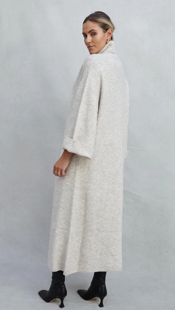 Vivienne is a perfect transitional sweater dress in a super soft and warm viscose blend yarn. Relaxed fit high neck, long sleeves and a straight-cut hem with slits in the centre. Pair with statement heels or boots for an easy to wear high impact look.