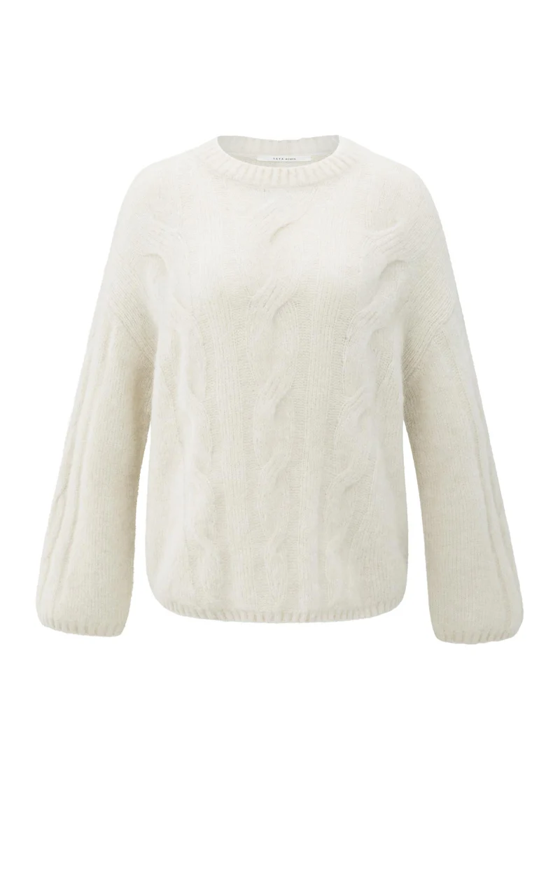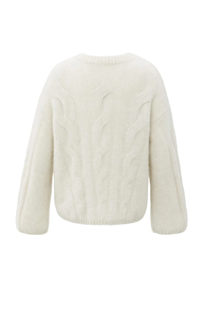 This knitted sweater is crafted from a soft, woolly blend and features a classic cable pattern on both the front and back. Designed with a round neckline, long sleeves and a relaxed straight fit. Ribbed trims complete the look. A timeless and cozy piece, perfect for colder days. The model is 173 cm and wears size 2.