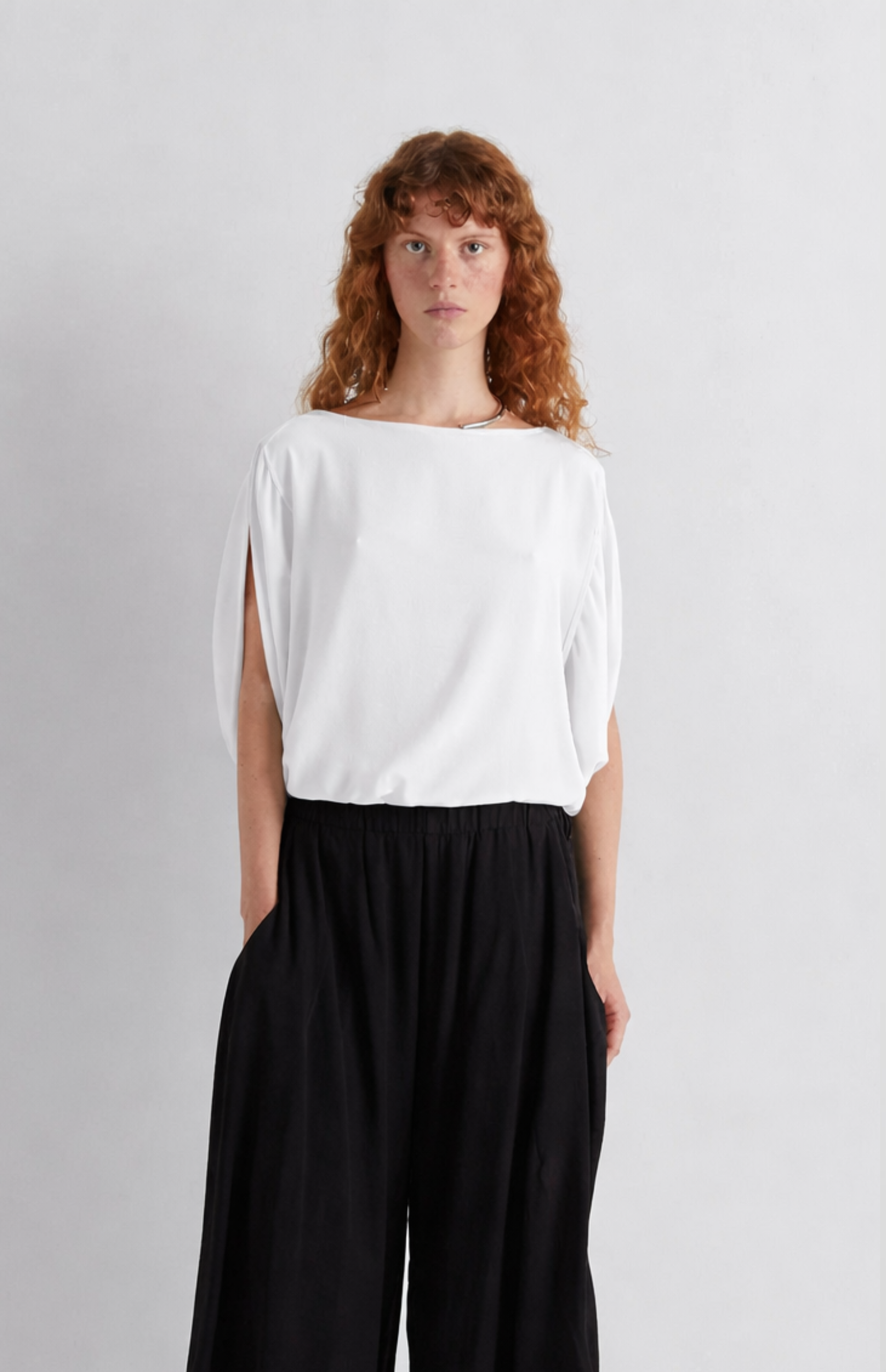 SOFT FIT BLOUSE WITH OPENING ON THE SHOULDER AND DRAWSTRING AT THE BOTTOM.