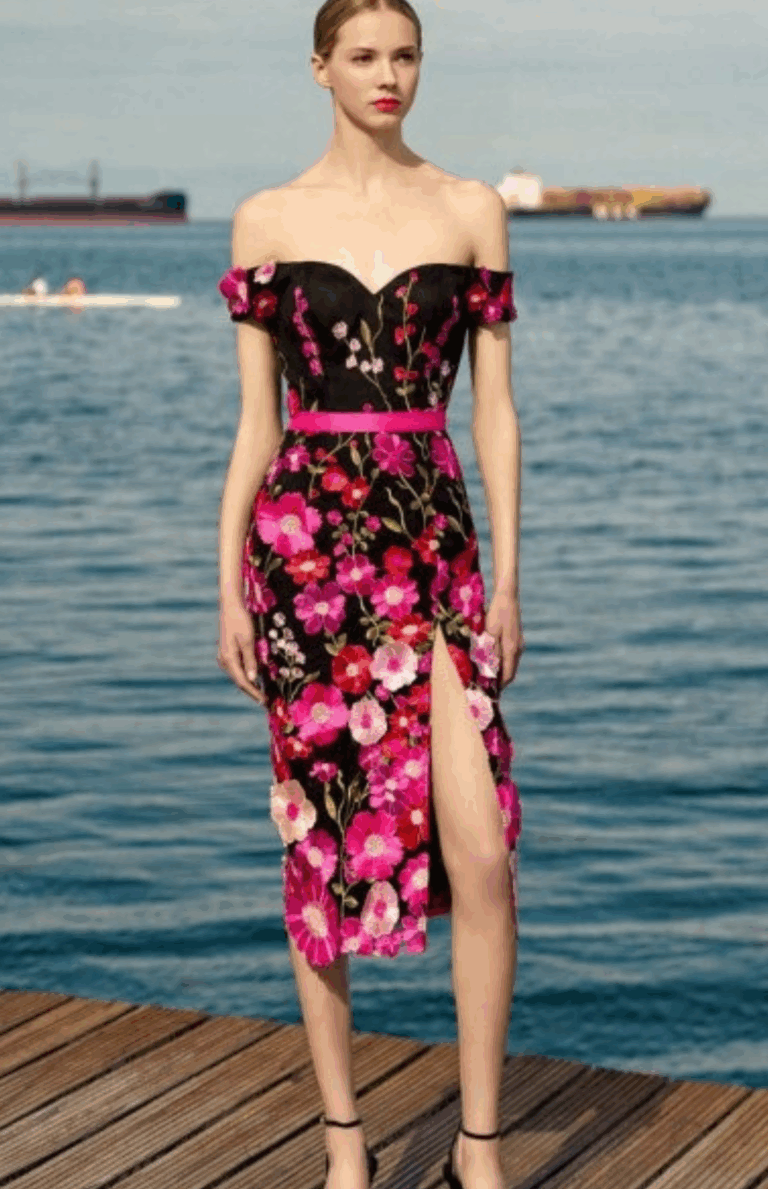 CECILIA 3D Floral Midi Dress