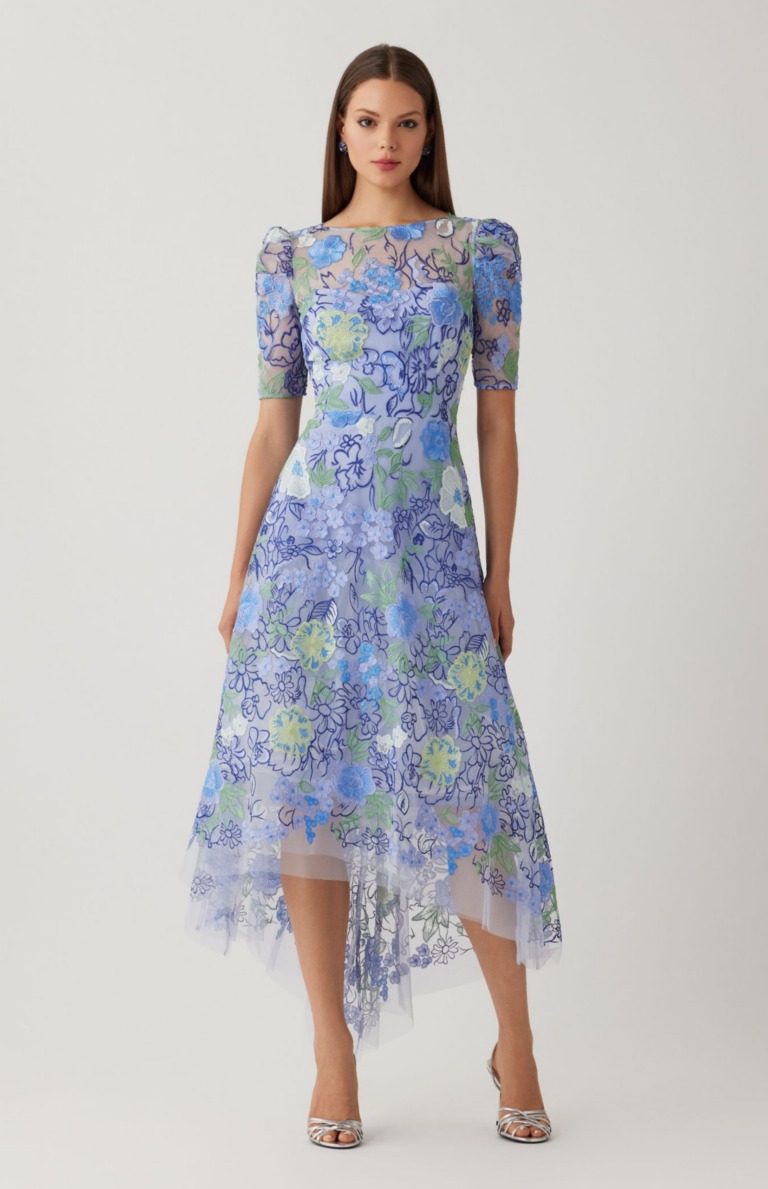 BEAL EMBROIDERED TULLE & CREPE DRESS
